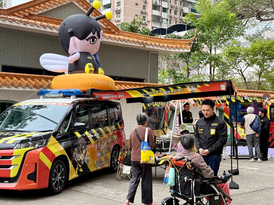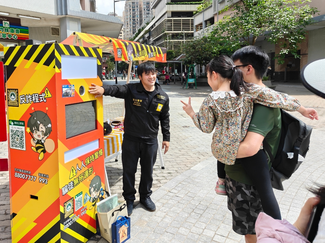 “反詐宣傳車”以鮮明的車身設計和醒目防騙標語“一人醒目,全家精明;人人保持警惕,騙徒無所遁形”吸引公眾目光,並搭配高達3.8米的反詐吉祥物“防騙小精靈”。活動期間,宣傳車拓展成防騙推廣站,設多個互動主題攤位,包括提供防騙測驗卷考驗參與者防騙知識的“智慧防騙加油站”,現場講解及演示如何運用“反詐程式”識破騙局的“反詐程式你要識”,透過觸屏小遊戲寓教於樂、讓參與者在趣味中學習防騙技巧的“全民防騙大作戰”,以及為參與者拍攝附有反詐標語的個人化照片的“反詐精英齊留影”,時刻提醒參與者關注防騙資訊。