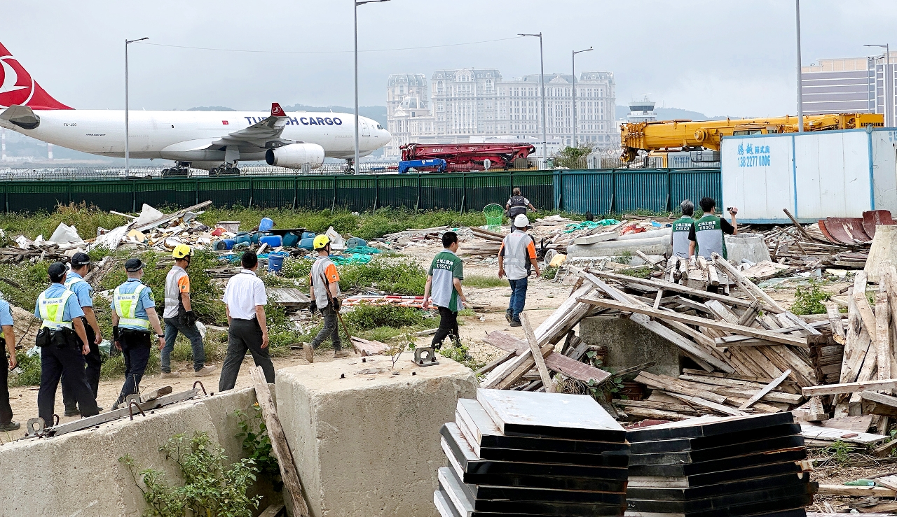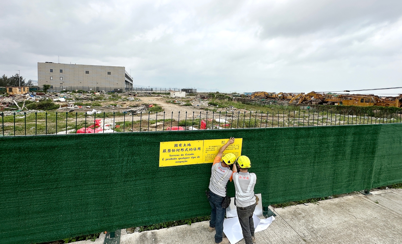 特區政府今日(4月23日)展開跨部門聯合清遷行動,收回氹仔新城填海E2區機庫路一幅約13,515平方米被佔用的國有土地。
