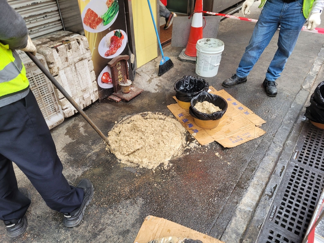 市政署優先處理水浸易發區域渠網,在日常巡查及渠網清理中,經常發現油脂凝固物及水泥砂漿等阻礙下水道,主要涉及食肆沒安裝合適隔油井或沒定期清理,令油脂凝固物阻塞下水道;地盤則將未經處理的污水或建築廢料排至公共渠網。市政署聯同相關部門持續巡查,第一季巡查飲食場所隔油井330次,對違規食肆發出實況筆錄逾20宗;巡查各區地盤150次,發出實況筆錄約10宗。市政署呼籲市民及商號切勿將垃圾、油脂等物料傾倒至公共街渠;業界須加強清潔隔油井及地盤廢水過濾設備,切勿把水泥漿等建築廢料或油污排入公共下水道,另提醒地舖商戶切勿將紙皮、發泡膠箱等隨意於街道擺放,以免暴雨期間因沖積堵塞渠口,影響渠道的正常排放效能。