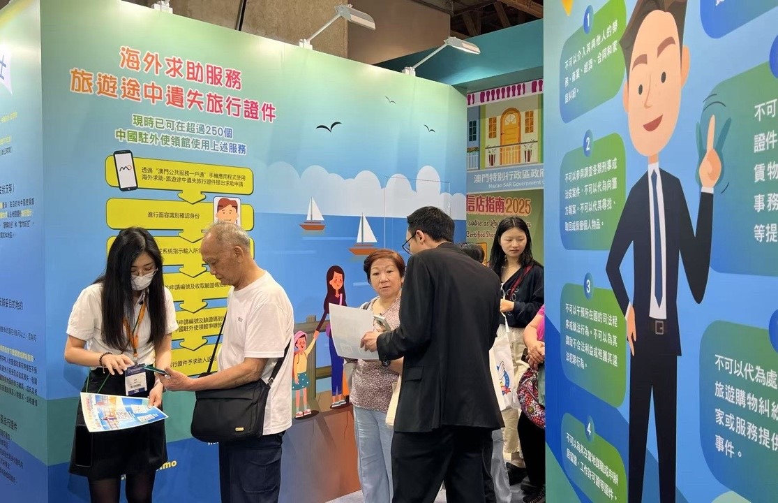 此外,旅博會期間,身份證明局與外交公署合辦的展位設於會場B 區,編號 B8,今年展位擴大規模,特設特色打卡裝置、現場播放有關“近年中國領事保護工作”的短片、“平安出行海外求助”領事保護宣傳短片以及圖片展覽,今年還新增線上參加有獎問答遊戲,獎品豐富,歡迎市民蒞臨參與。未來,身份證明局將繼續與外交公署保持緊密合作,透過多元方式向澳門居民宣傳領事保護資訊。