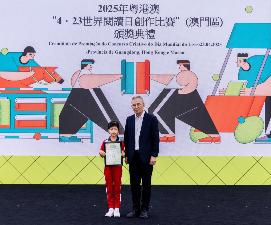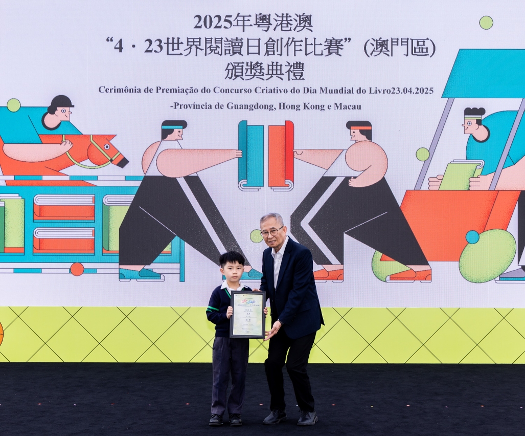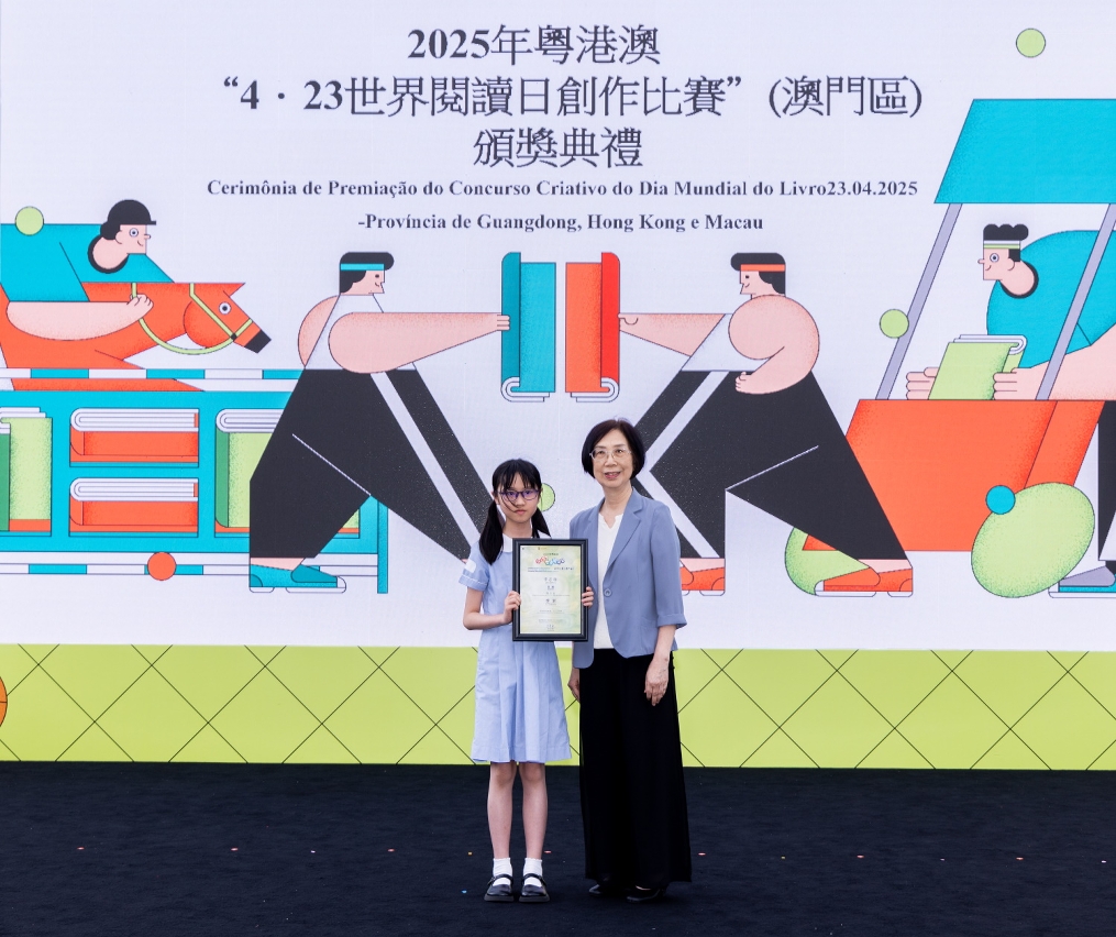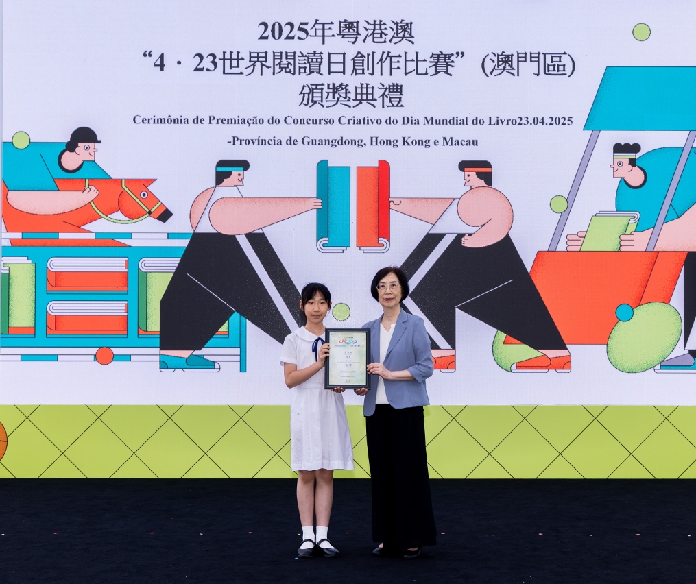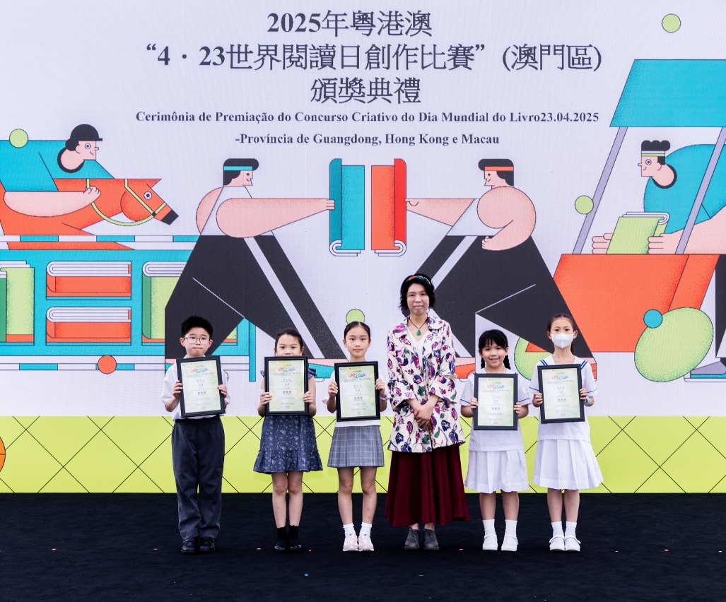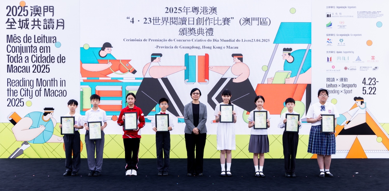 為慶祝“4‧23世界閱讀日”,文化局聯同廣州、深圳及香港等城市之公共圖書館合作舉辦2025年粵港澳“4‧23世界閱讀日創作比賽”。澳門區頒獎禮於4月27日(星期日)在澳門文化中心廣場舉行,65位學生獲頒發獎狀及向22間得獎者所屬學校致送紀念座,徵文組初中組學生分享獲獎感言,場面熱鬧。