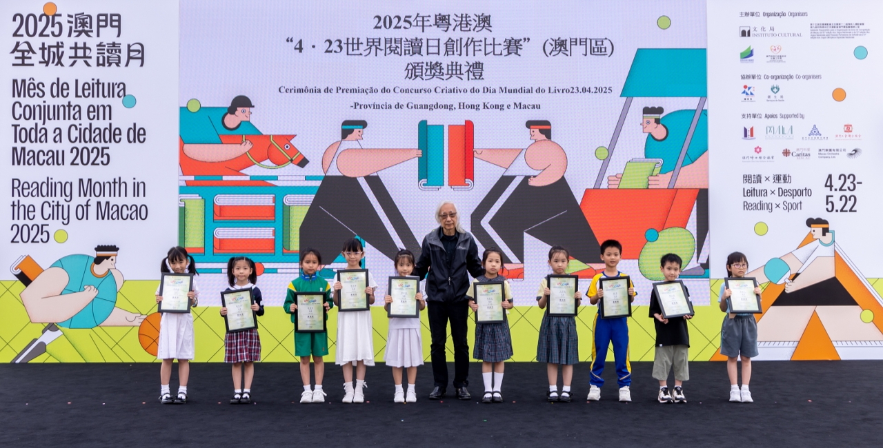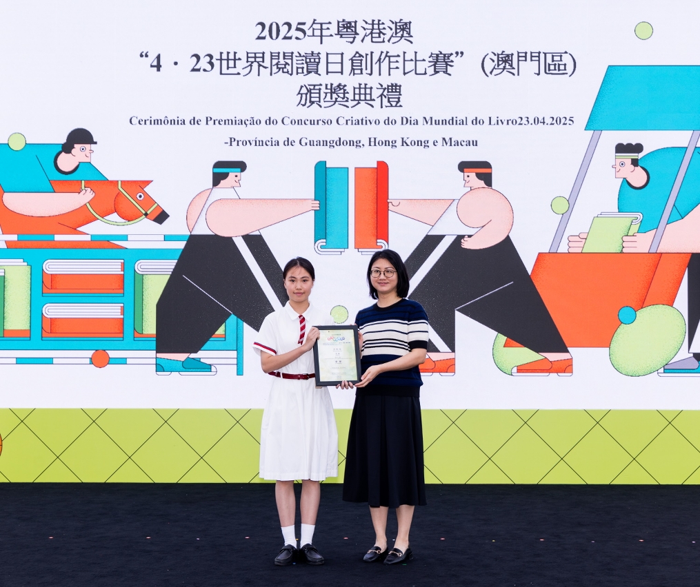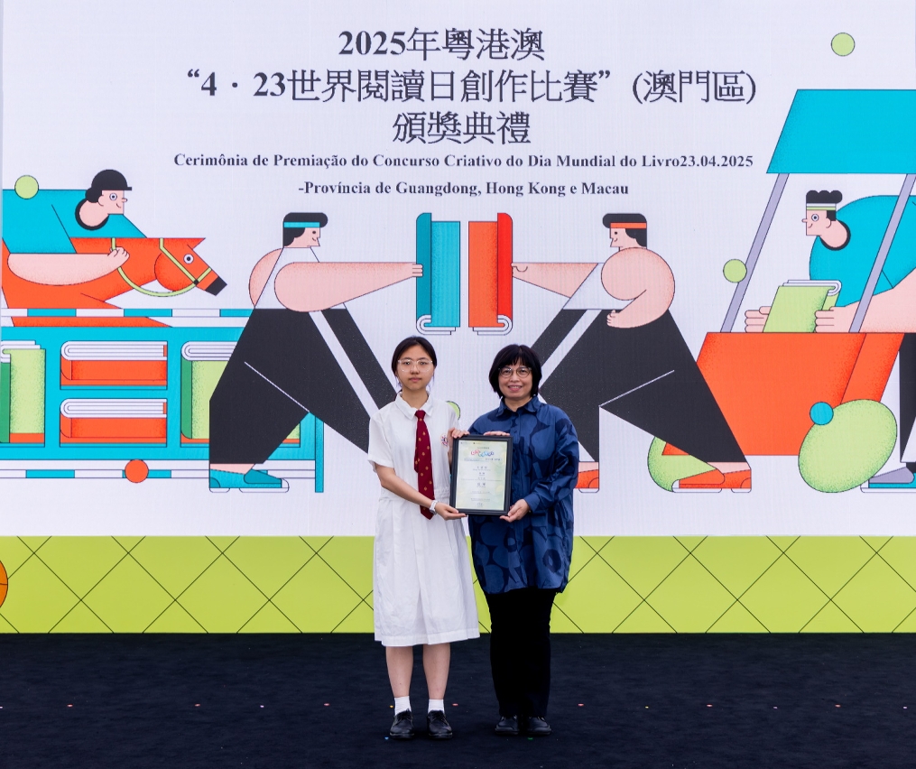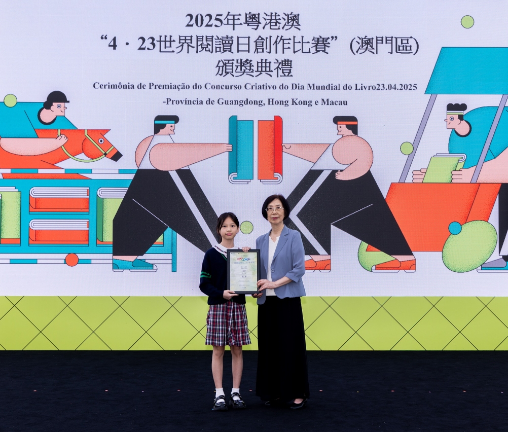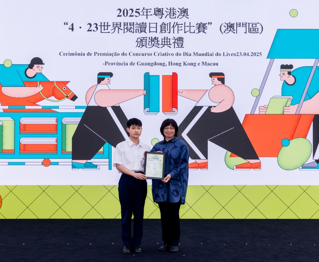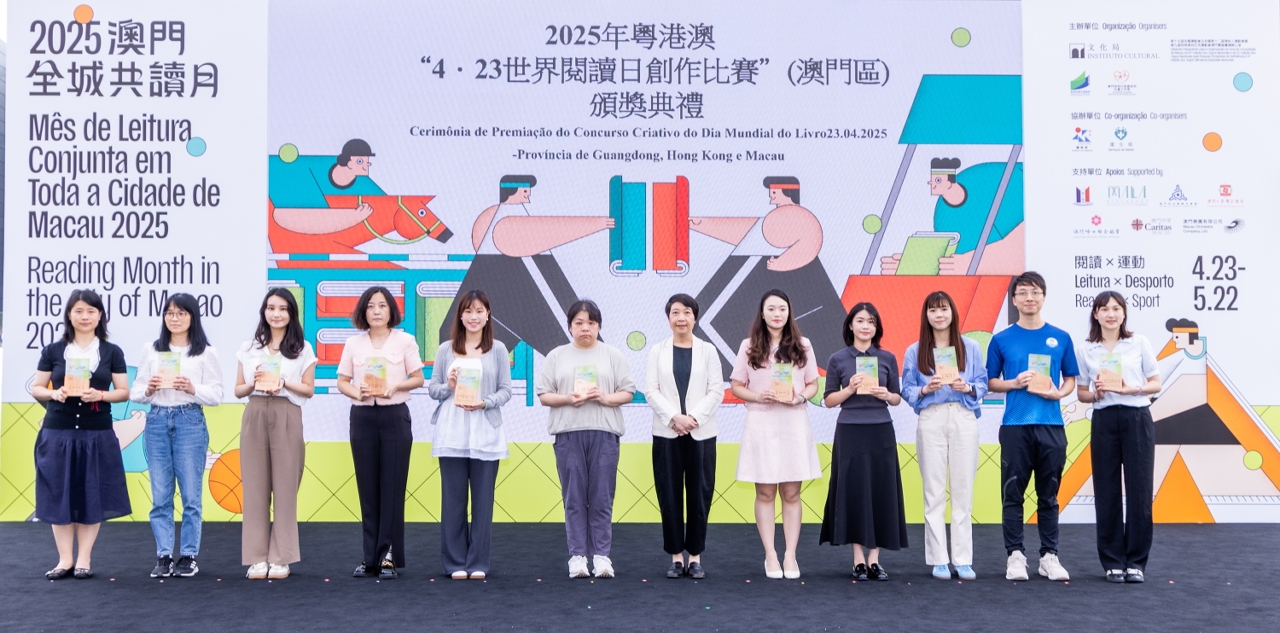 為慶祝“4‧23世界閱讀日”,文化局聯同廣州、深圳及香港等城市之公共圖書館合作舉辦2025年粵港澳“4‧23世界閱讀日創作比賽”。澳門區頒獎禮於4月27日(星期日)在澳門文化中心廣場舉行,65位學生獲頒發獎狀及向22間得獎者所屬學校致送紀念座,徵文組初中組學生分享獲獎感言,場面熱鬧。