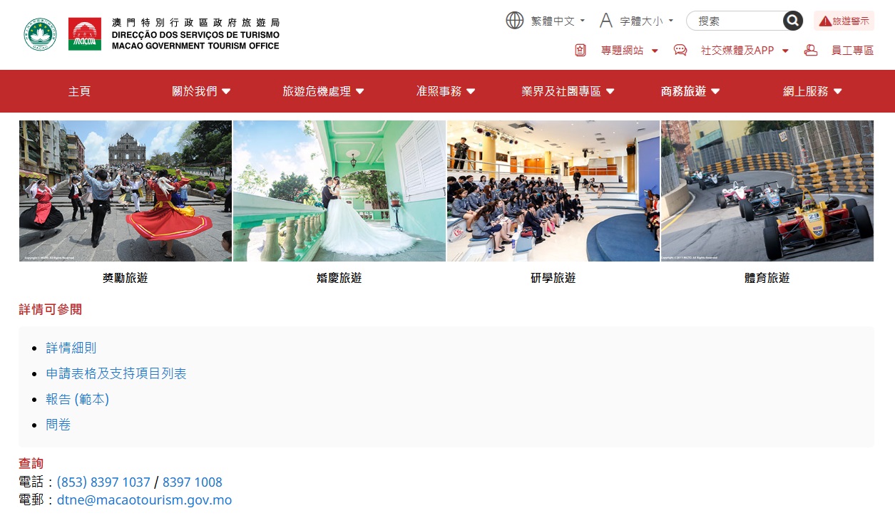 申請流程亦同步優化,透過簡化表格提升辦理效率。申請者須於活動舉辦首日起計,最少15個工作天前向旅遊局遞交指定所需文件及活動資料。更新版“旅遊激勵計劃”詳情細則及申請表格等,可瀏覽https://www.dst.gov.mo/zh-hant/business-tourism/travel-stimulation-program.html