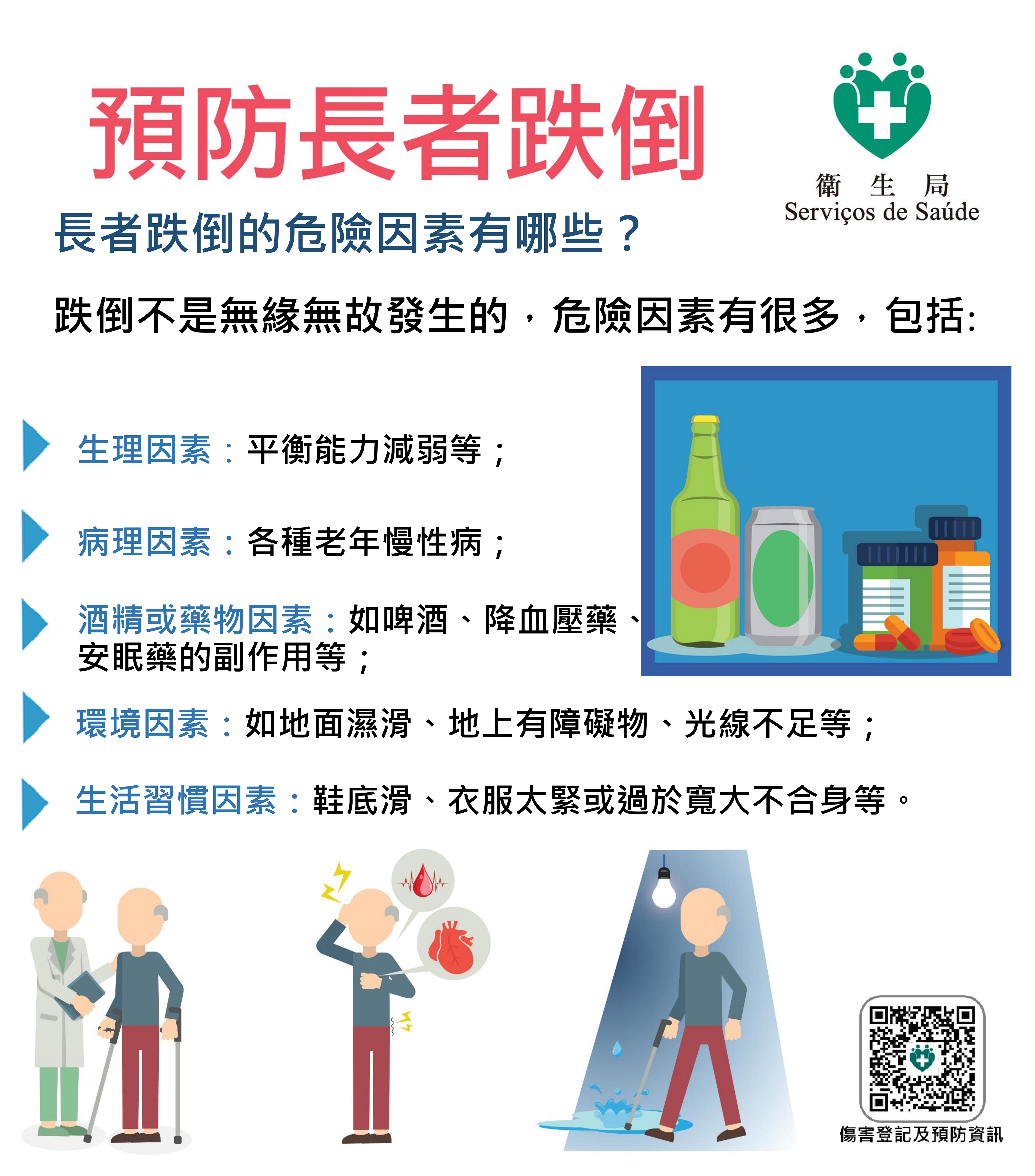 根據本澳地區傷害監測系統資料顯示,本澳年均錄得逾3,500宗意外跌倒通報個案,是本澳最常見的傷害事件;其中家居及街道為高發地點,長者更屬高危群體,跌倒預後情況較嚴重。衛生局提醒,長者因慢性疾病、視力退化等因素,跌倒風險顯著增加,並可能導致包括骨折、顱腦損傷等嚴重後果。因此,預防跌倒不僅是保障健康的重要措施,也是提升生活質量的關鍵。