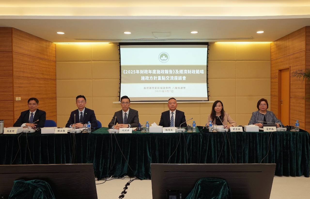為進一步加強特區政府施政報告及施政方針重點的宣傳工作,讓社會各界更深入了解特區政府施政方向和工作部署,政策研究和區域發展局及特區政府政策宣傳協調小組5月7日在政策研究和區域發展局會議室舉行2場《2025年財政年度施政報告》及施政方針重點交流座談會,政策研究和區域發展局、行政公職局、法務局、經濟及科技發展局、招商投資促進局、金融管理局及科學技術發展基金的領導及主管官員出席,為參加交流座談會的社會人士介紹今年施政報告及行政法務司和經濟財政司範疇施政方針重點,並進行互動交流。2場交流座談會主題涵蓋廣泛,包括“公共行政改革”、“登記公證電子化服務”及“產業多元”等領域。