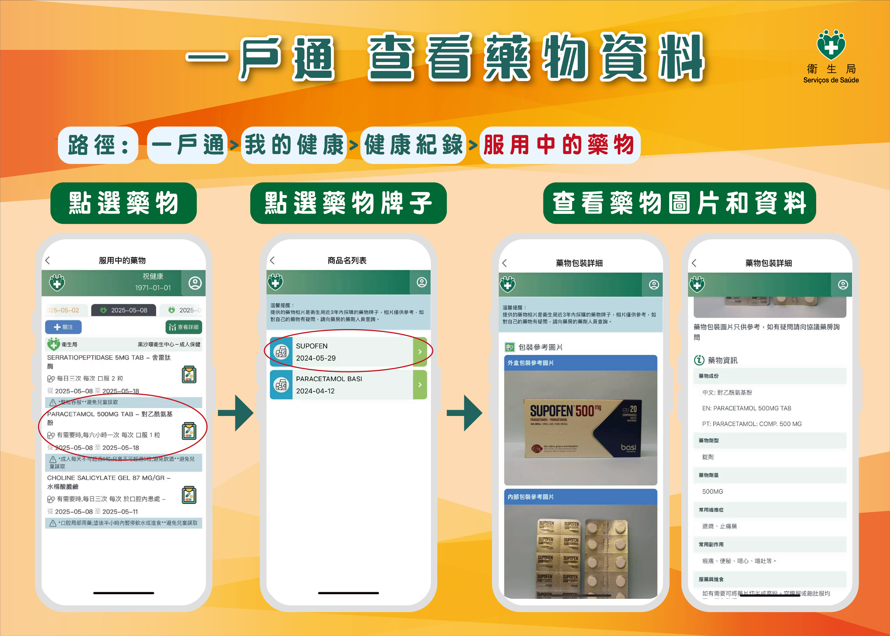 為配合特區政府電子政務發展,推動智慧醫療,進一步便利居民取得更多藥物資訊,“一戶通”內“服用中的藥物”已新增查看衛生局處方藥物資料。