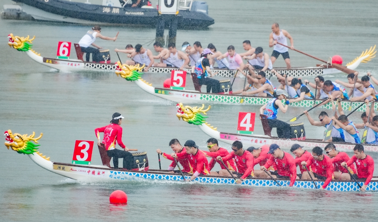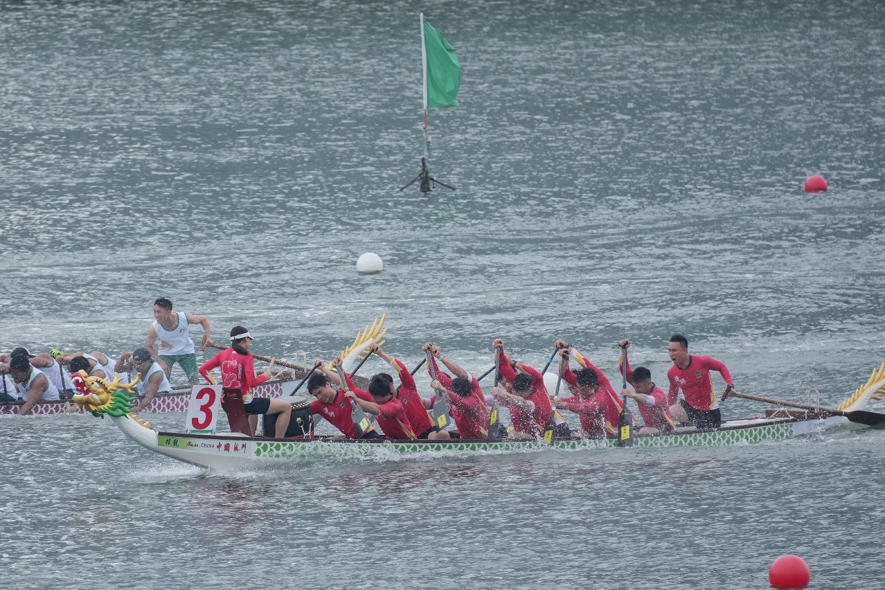 “2025澳娛綜合澳門國際龍舟賽”首日進行了多組200米小龍賽事,分別為澳門小龍賽公開組、澳門小龍賽女子組、澳門政府部門小龍賽及澳門大學生小龍賽公開組。最受矚目的公開組賽事,在預賽、準決賽均獨佔鰲頭的消防局以48秒856率先衝線,成功衛冕冠軍,亞軍為澳娛綜合盛世,季軍為澳娛綜合金禧-A。