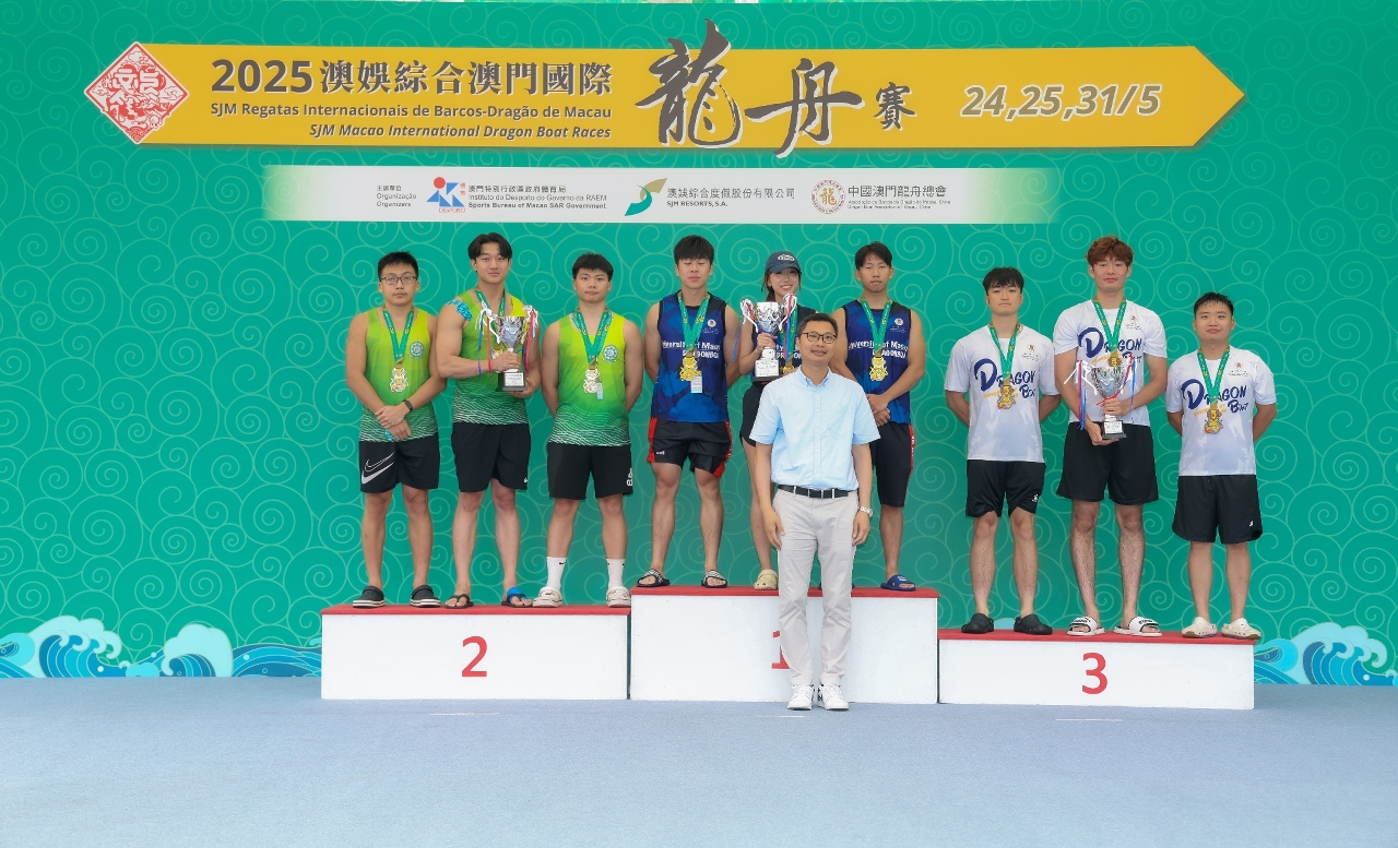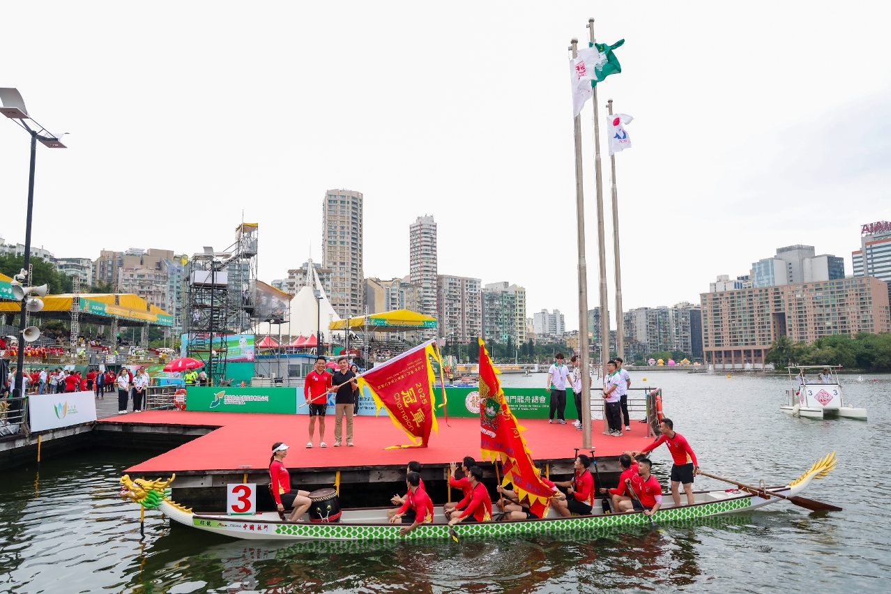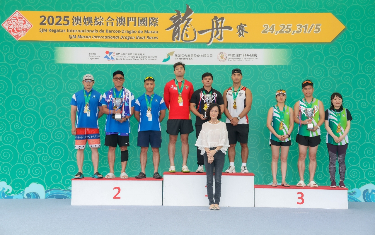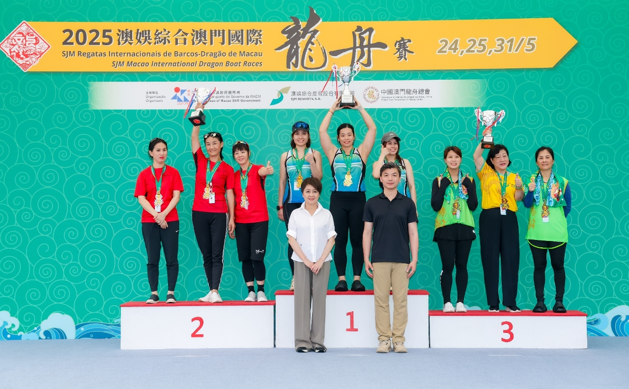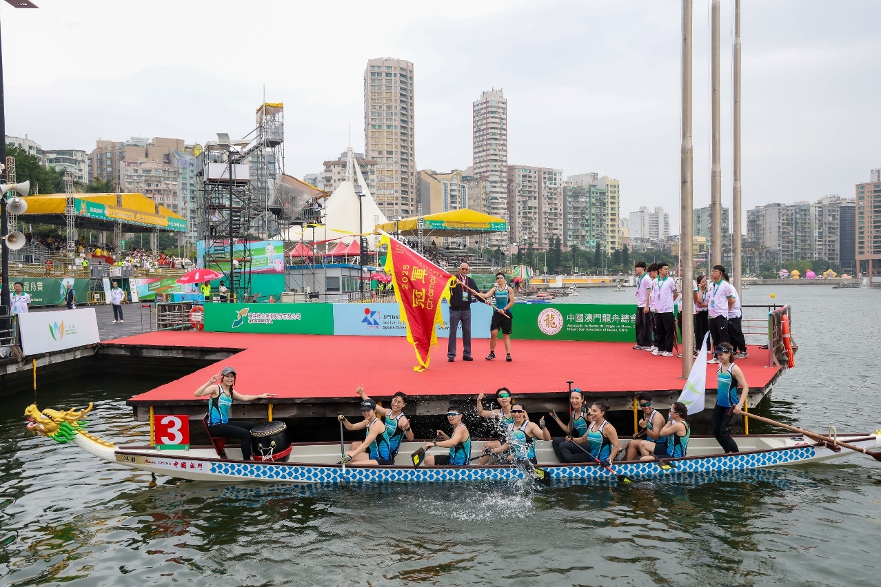 由體育局、澳娛綜合度假股份有限公司(“澳娛綜合”)及中國澳門龍舟總會主辦,市政署及行政公職局協辦的“2025澳娛綜合澳門國際龍舟賽”,今(24)日在南灣湖水上活動中心舉行首日賽事,經過多輪比拼,消防局再度衛冕澳門小龍賽公開組(200米)冠軍,而澳門青少年發展協會-A則奪得澳門小龍賽女子組冠軍。明(25)日將舉行澳門龍舟賽標準龍(500米)公開組、女子組及混合組賽事。