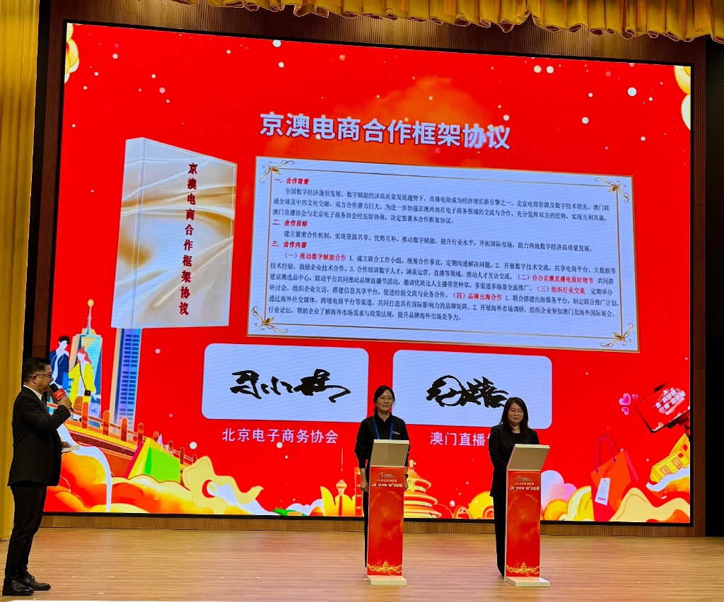 “2025北京直播電商購物節”於5至6月期間舉行。開幕式當天,在北京巿商務局黨組書記、局長朴學東和經濟及科技發展局局長邱潤華的共同見證下,北京電子商務協會與澳門直播協會正式簽署合作備忘錄,雙方建立緊密合作機制,實現資源共享、優勢互補,推動數字賦能,為兩地數字經濟注入新動能。