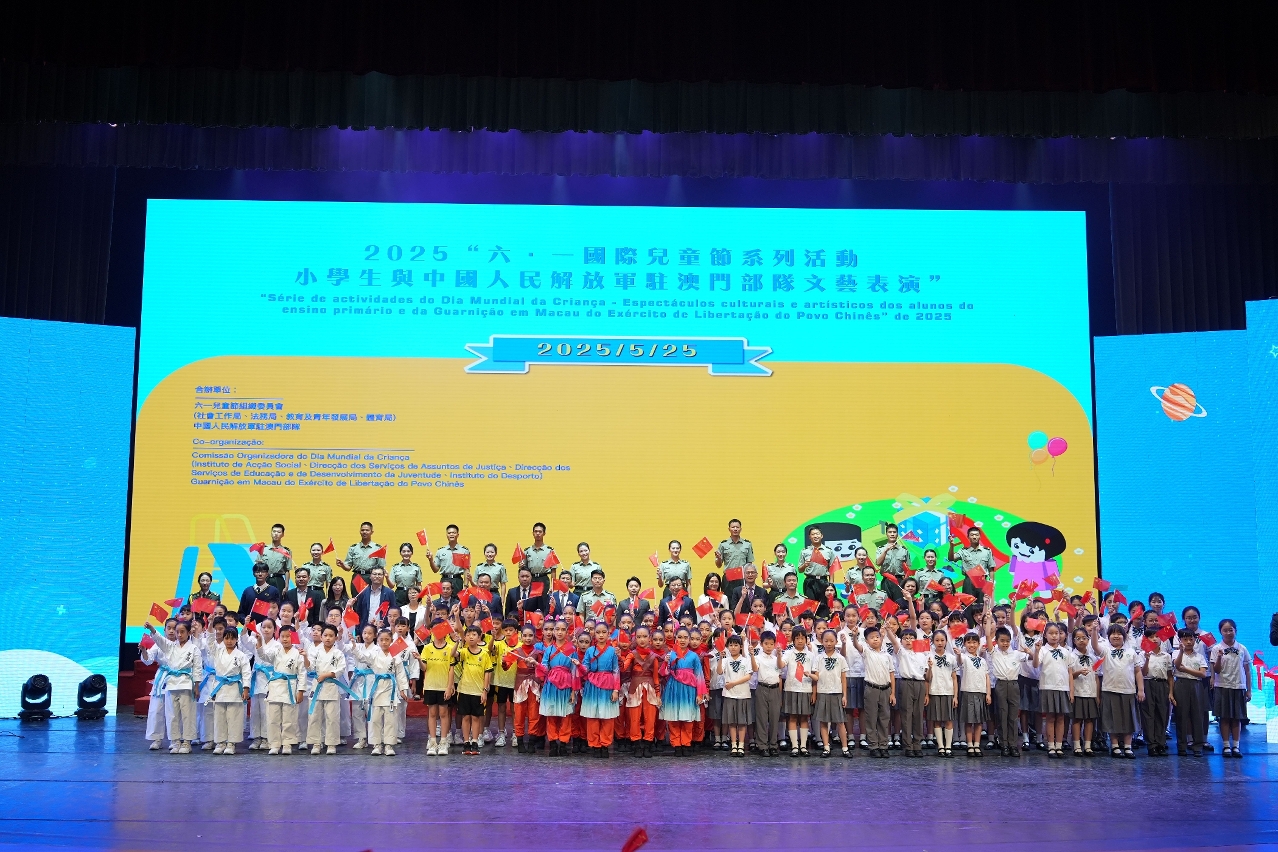 由教育及青年發展局、法務局、社會工作局、體育局組成的“六.一國際兒童節組織委員會”和中國人民解放軍駐澳門部隊合辦的2025年“六.一國際兒童節系列活動——小學生與中國人民解放軍駐澳門部隊文藝表演”,於5月25日在氹仔軍營順利舉行。由教青局組織17所學校約700名小學生走進氹仔軍營,透過與駐澳部隊的互動交流,提升學生的民族認同感和愛國愛澳情懷。