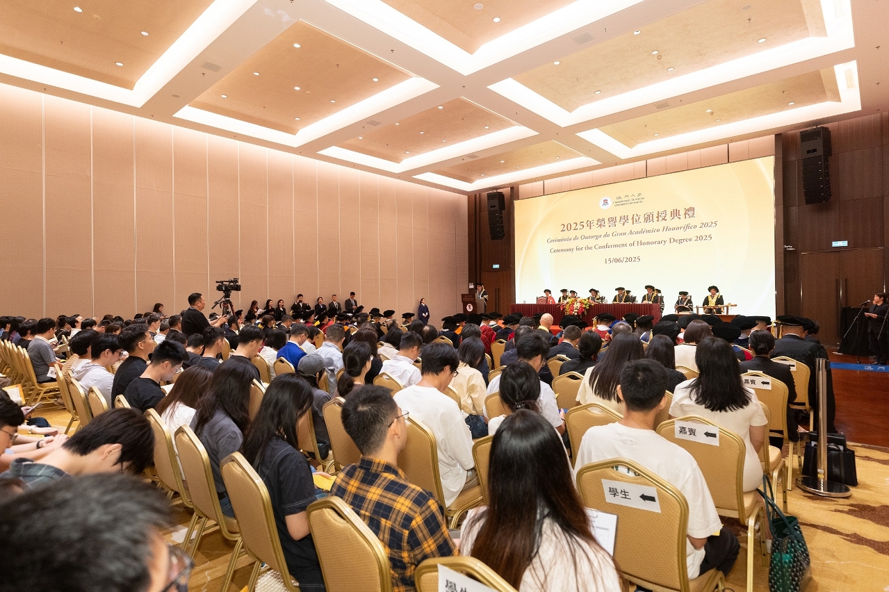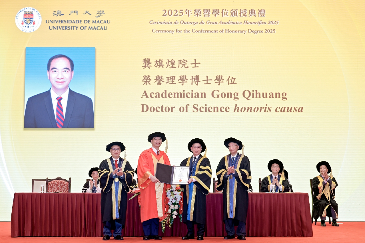 澳門大學今(15)日舉行2025年榮譽學位頒授典禮,向國際著名光學專家、北京大學校長龔旗煌院士頒授澳大榮譽博士學位,以表彰其在學術領域的卓越成就及對社會的重大貢獻。