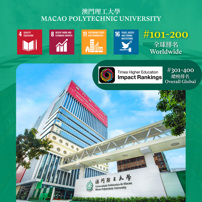 英國泰晤士高等教育2025年度世界大學影響力排名於6月18日全球發佈,澳門理工大學於優質教育等四項聯合國可持續發展目標(SDG)位列全球第101-200名區間,並於總榜排名全球第301-400位,是澳門地區排名最高的高校,澳理大在全球可持續發展方面的影響力獲國際認可。
