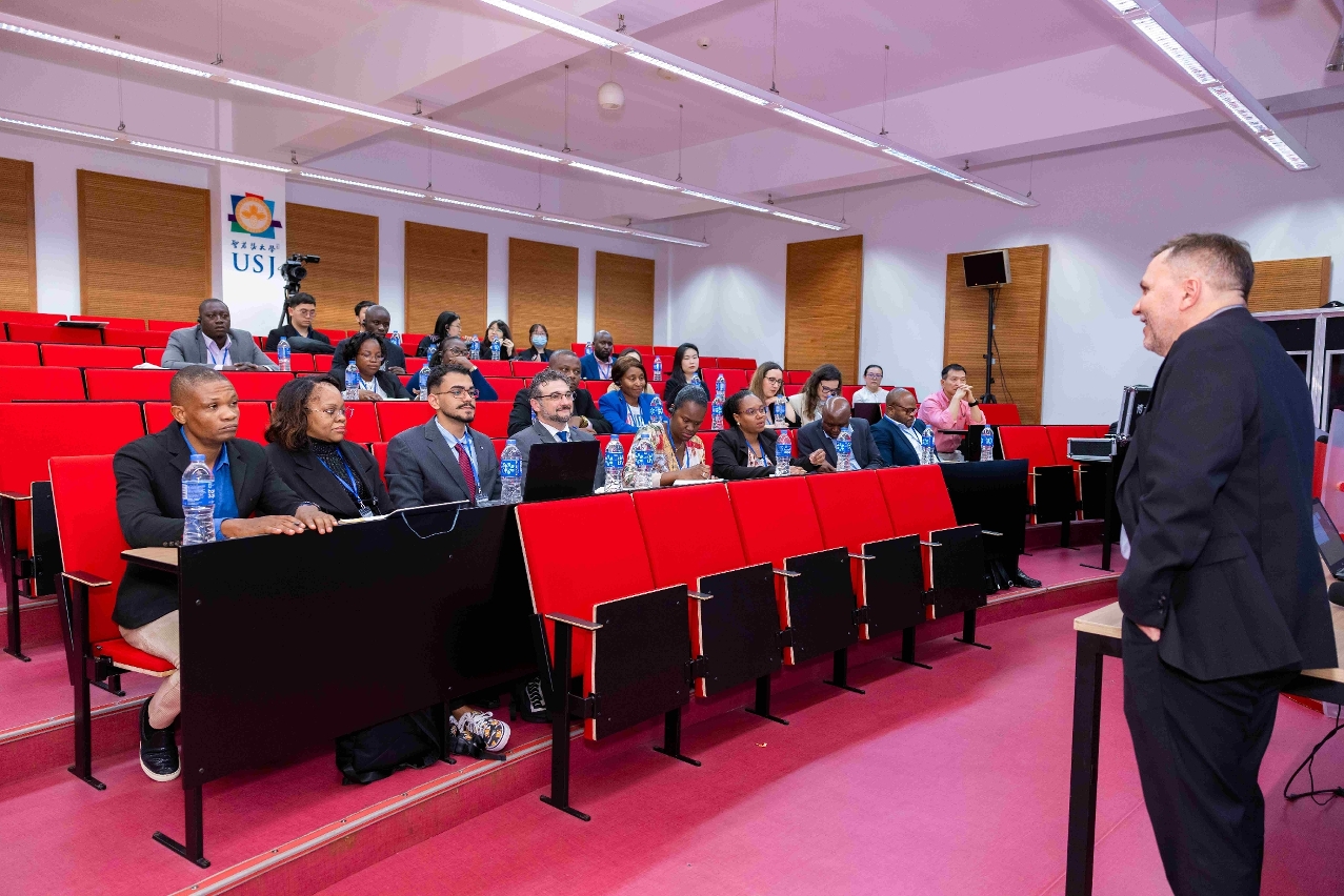 農韻淇副校長表示,感謝中葡論壇秘書處為聖若瑟大學創造機會,參與舉辦這次“中國-葡語國家藍色經濟合作研修班”,將中國與葡語國家聯繫起來,以澳門和福州為平台開展文化和知識交流。自2020年起,聖若瑟大學與中國科學院海洋研究所建立合作關係,並於2023年共同成立『中葡海洋與環境科學聯合實驗室』,雙方希望在中葡論壇框架下,通過此合作平台,推動中國與葡語國家海洋科學教育發展,共拓新機遇。