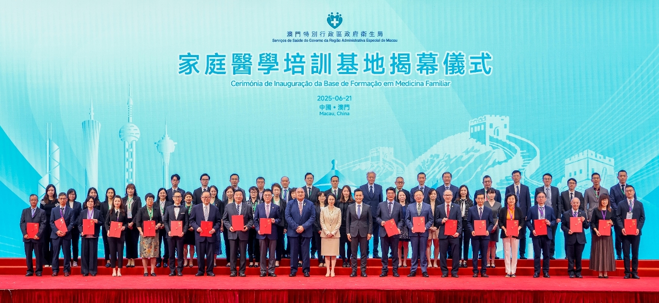 為落實《健康澳門藍圖》所訂定的總體目標和指標,積極推動“健康社區”計劃,貫徹資源下沉至社區,擴大社區醫療效能,提升本澳醫療人員的專業素養及臨床實踐技能,推動本澳醫療技術進步,助力實現建設“幸福澳門”的施政願景,澳門特別行政區政府衛生局於今(21)日舉辦“澳門醫學論壇2025暨家庭醫學培訓基地揭幕儀式"。澳門特別行政區政府社會文化司司長柯嵐、世界衛生組織西太平洋區域主任賽亞·皮烏卡拉(Dr Saia Ma'u Piukala)、中國工程院院士、上海交通大學醫學院附屬瑞金醫院院長寧光、中央人民政府駐澳門特別行政區聯絡辦公室宣傳文化部部長萬速成、澳門特別行政區政府衛生局局長羅奕龍、國家衛生健康委員會基層衛生健康司副司長黃磊等,來自內地、香港特別行政區和本澳的醫療機構、學者及社團代表近1,000人出席了是次論壇及揭幕儀式。