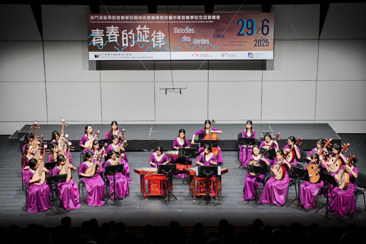 文化局轄下澳門演藝學院音樂學校6月29日在澳門文化中心小劇院,舉行“青春的旋律2025”— 澳門演藝學院音樂學校與中央音樂學院附屬中等音樂學校交流音樂會,展現京澳兩地聯合辦學16載的豐碩成果。