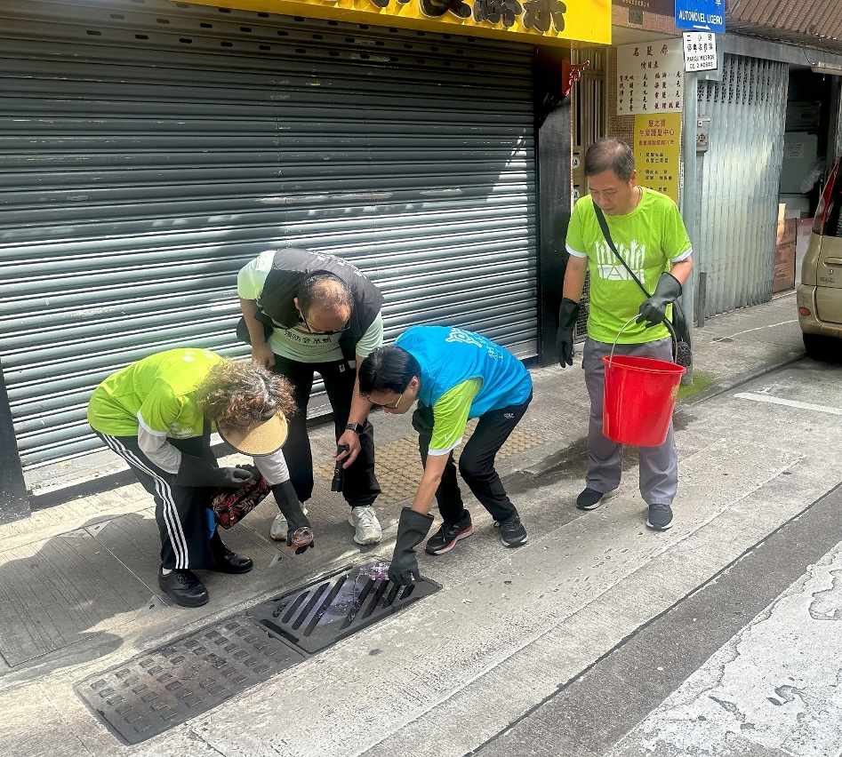 衛生局人員以講座形式向坊會會員及該區居民講解傳播登革熱病毒的白紋伊蚊生長過程及生活習性,並於現場展示了蚊幼蟲(孑孓)標本,讓居民更直觀地明白清除積水對預防感染登革熱的重要性和成效,加強居民對採取正確防蚊措施的認知。衛生局人員於講座後聯同坊會人員在區域內進行外展活動,共同檢查公共街渠和孳生源,以及設置社區流動活動攤位,通過遊戲形式提醒居民注意環境衛生,加強清除家居及工作環境積水以杜絕蚊蟲孳生,降低社區登革熱傳播風險。