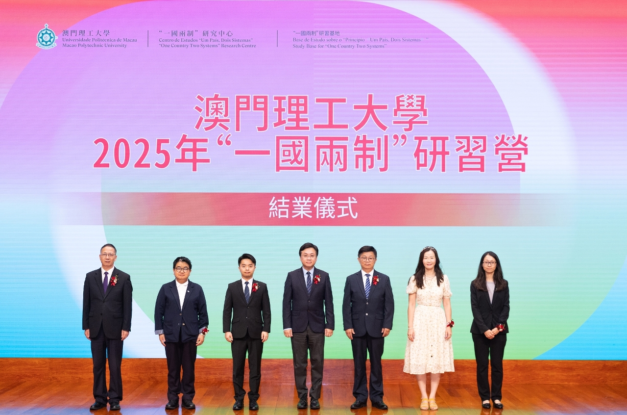 為了讓內地高校師生更好了解澳門特色“一國兩制”成功實踐的情況,親身感受澳門回歸祖國後的發展,澳門理工大學舉辦 “一國兩制”研習營,備受歡迎。2025年“一國兩制”研習營的結業儀式於澳理大禮堂舉行,來自內地11所高校153名師生完成研習之旅。由澳門特區政府教育及青年發展局副局長丁少雄、澳門理工大學校長嚴肇基、澳門中華教育會會長鄭洪光、澳門天主教學校聯會理事長劉麗妹、澳門公職教育協會理事長香梅,以及澳理大“一國兩制”研究中心主任冷鐵勛等擔任主禮嘉賓,向參營師生頒發結業證書,場面熱鬧。