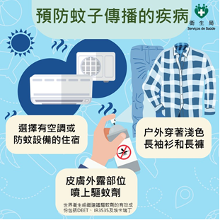 基於鄰近廣東省地區錄得多例基孔肯雅熱個案,該疾病臨床表現及傳播方式和登革熱類似,衛生局將密切關注相關情況,適時作出應對措施,同時呼籲居民注意防範感染疾病,應採取清除積水及防蚊措施。
