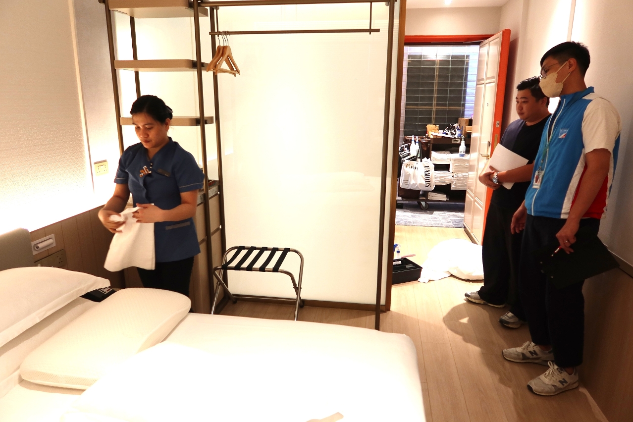 勞工局於4至6月期間展開酒店業工作場所排查行動,旨在確保有關工作場所符合職安健相關法例標準,推進企業積極和主動預防和解決潛在安全隱患,維護場所的安全與秩序。是次行動共對75間酒店進行職安健巡查,當中對酒店轄下的餐廳、廚房、前台、房務、機房、泳池泵房、布草房、工程部工場、辦公室等工作區域進行檢查,並對工作環境、用電、機器和使用化學品安全等項目提出改善建議。