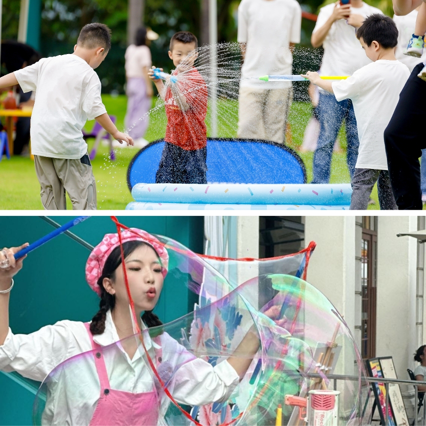 「街坊同樂日‧快樂當『夏』」的兩項重頭戲分別是「夏日泡泡Show」及「夏日玩水樂園」,一起透過有趣的互動節目釋放快樂多巴胺,現場還會隨機派發泡泡棒,盡情享受夏日樂趣。其中,「夏日玩水樂園」提供多種趣味玩樂設備和水池,開放對象予5至12歲的小朋友,有意報名家長可透過海報上的二維碼預約登記場次,費用全免,名額有限,先到先得。