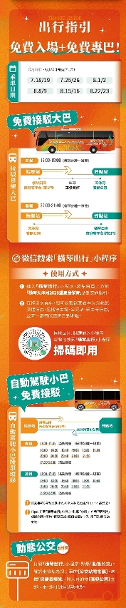 今天(7月23日)20:00,開放本週三天演出預約通道。觀眾可通過“橫琴民生”微信公眾號預約,或掃描二維碼進入預約平台。為便利澳門居民參加音樂會,活動設有免費接駁大巴和自動駕駛小巴往返橫琴口岸和橫琴賽艇公園接送觀眾,演出場地附近並設有停車場。