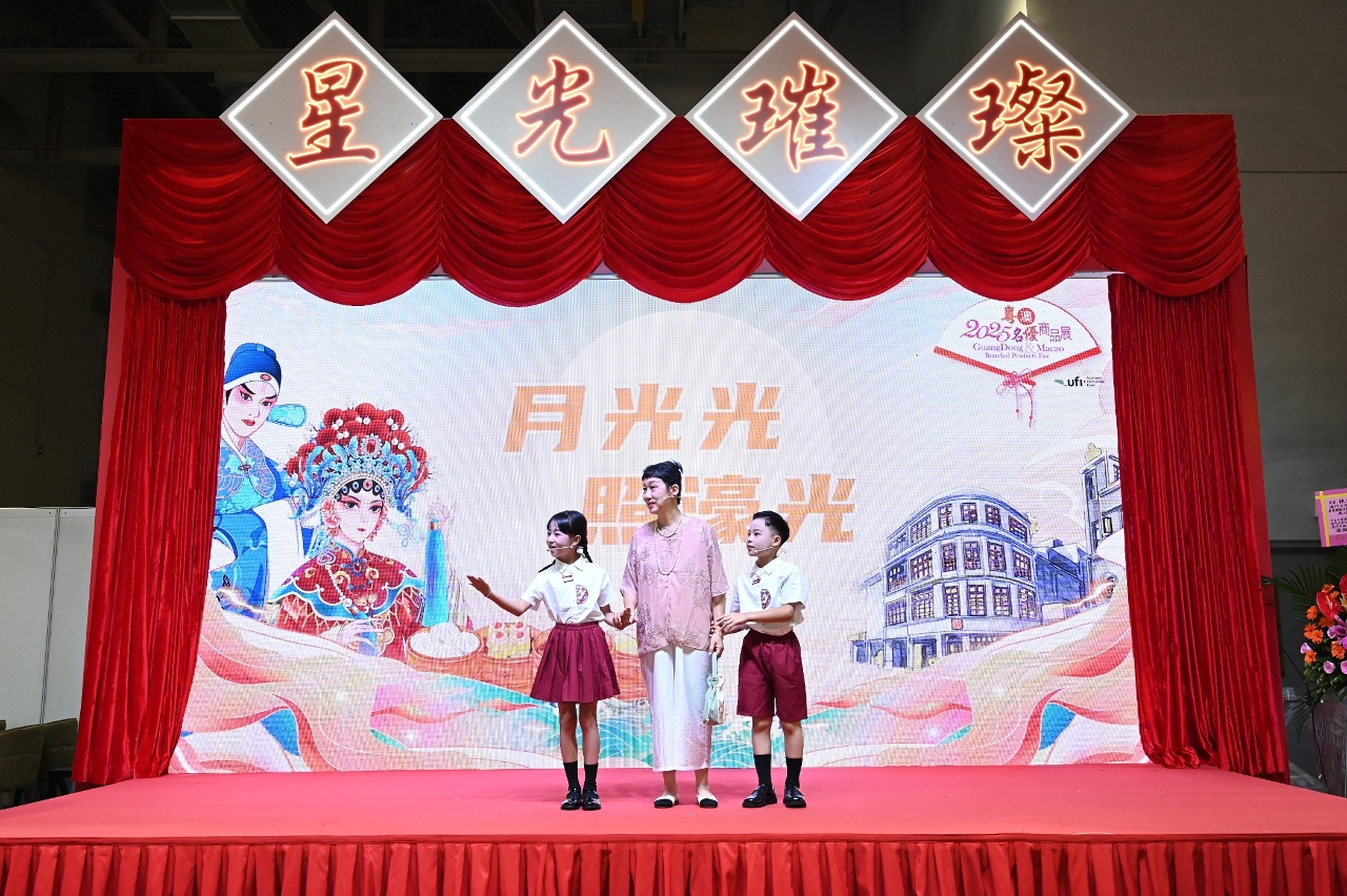 國潮商品展區的“荔枝灣涌”西關風情長廊成為最熱門打卡點。國家級非遺大師現場演示非遺技藝,吸引逾7,000人次駐足觀看;在“粵澳里72號”體驗空間內,電視劇《七十二家房客》中飾369及258的演員吳家輝和何志鋒帶來《月光光.照濠江》原創舞台劇,帶動懷舊熱情;粵劇小傳承人的快閃表演穿梭於展館各處,與觀眾熱情互動,氣氛高漲。