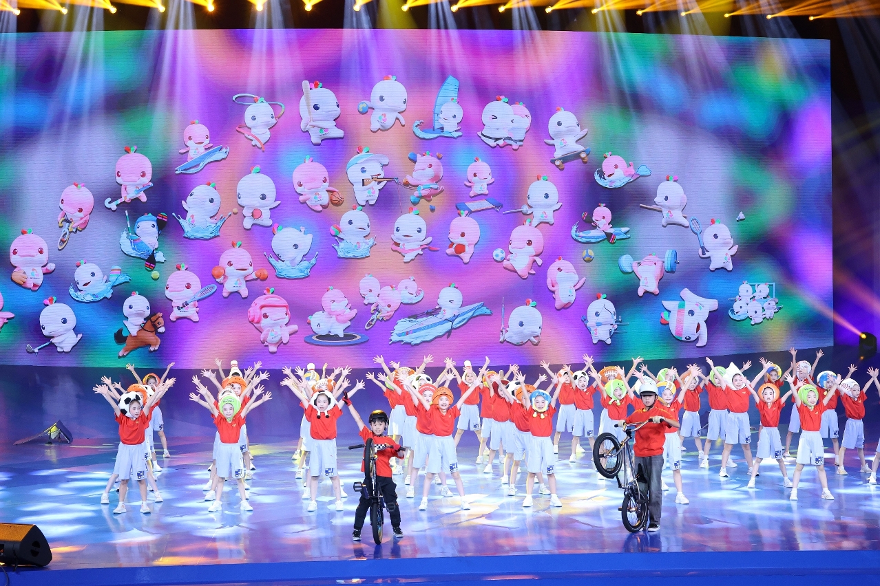 倒計時100天啟動儀式圍繞“灣區同心 全運同行”為主題,以開場節目《百日逐夢》拉開帷幕,由一百名代表組成百人齊舞陣容,結合創意人屏互動秀表演,推動現場觀眾情緒高潮。隨後進行會徽、吉祥物、獎牌、服裝、頒獎音樂、火炬等一系列的舞台展示發佈環節,透過生動介紹設計巧思,傳遞豐富信息和全運精神。由運動員、賽事工作人員、志願者等代表上台進行的百日衝刺宣誓環節,口號“我們準備好了”響徹全場。