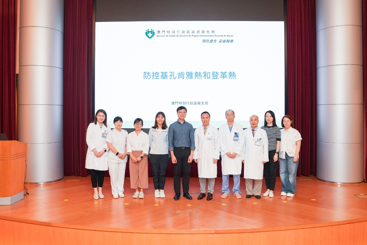 鑑於鄰近地區基孔肯雅熱病例明顯增多,加上本澳今年已錄得6例輸入性及2例本地基孔肯雅熱病例,為持續加強本澳醫護人員對蚊媒傳染病的防控意識及應對能力,衛生局日前為公私營醫療機構醫護人員舉辦了3場“防控基孔肯雅熱及登革熱”專題講解會,逾360人次參與。此外,還舉辦了“應對基孔肯雅熱院內防控機制流程”宣導會,由仁伯爵綜合醫院院長郭昌宇主持,進一步清晰並落實相關防控指引與流程,加強防範蚊媒傳染病的傳播風險。