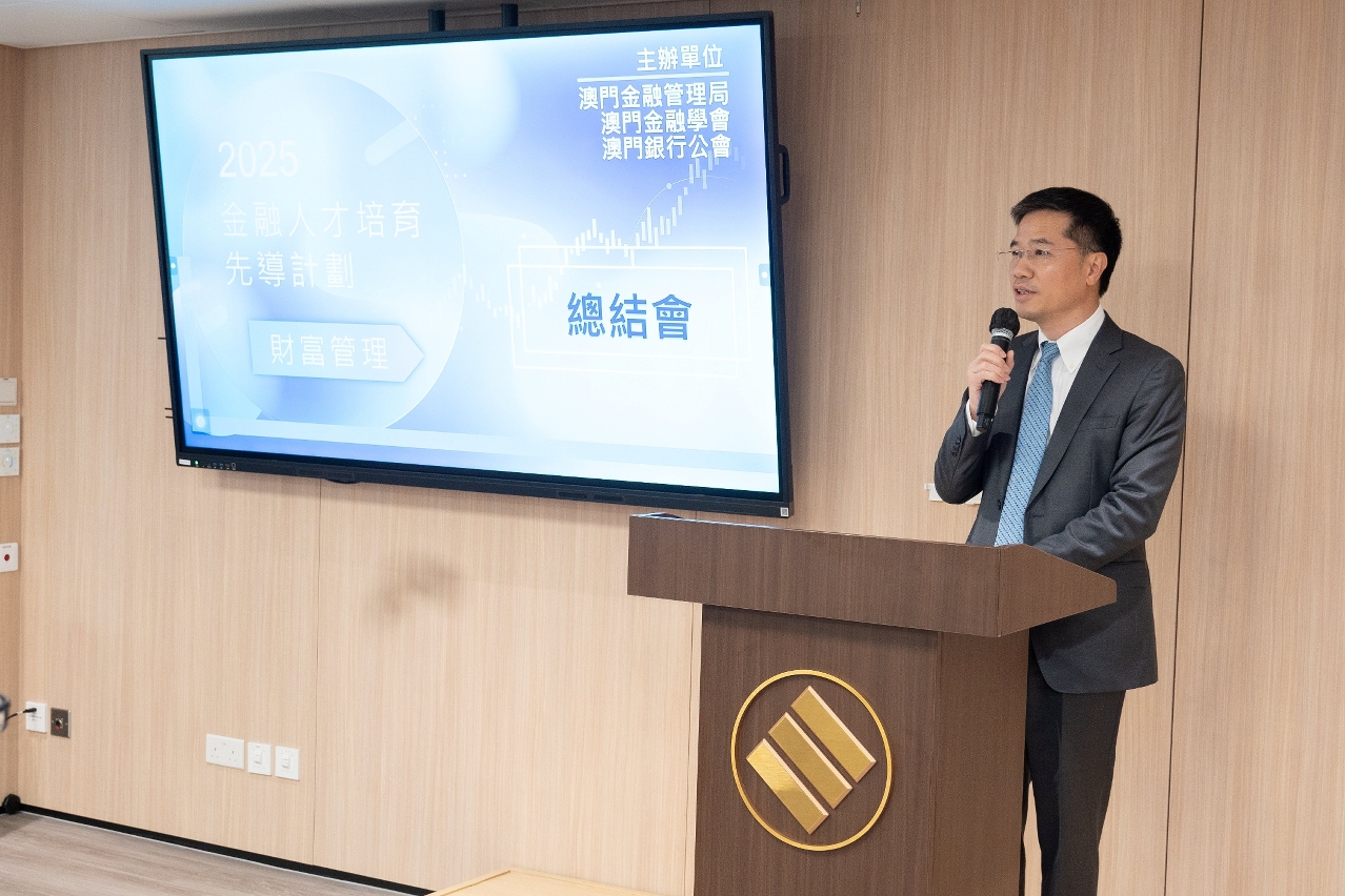 澳門銀行公會常務理事黃來志於致辭時指出,隨著澳門經濟適度多元發展加速推進及粵港澳大灣區金融合作深化,財富管理業務正迎來空前發展機遇,相關專業的高素質人才需求日益殷切,他並鼓勵學員緊貼行業發展趨勢,不斷提升專業知識和綜合能力,為澳門金融業的發展作出貢獻。