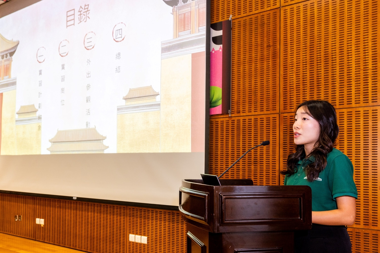實習生代表鄭玉嬋感謝文化局及故宮博物院提供的寶貴機會,以及各方人士的支持和勉勵。她表示,通過實習,同學們深入瞭解故宮博物院的運作,認識文物背後的動人故事,進一步增強對中華文化的認同與自豪。實習生以原創視頻和圖文展示,向觀眾呈現故宮文化的深厚底蘊與實習期間的精彩點滴,並從文化遺產保護與活化、博物館策展、文創營銷及觀眾服務等多方面,分享在故宮的寶貴經驗與學習心得。文化局“澳門文化藝術青少年計劃”的中學生學員亦出席分享會,並與實習生熱絡互動,展現青少年對文化傳承的積極參與和活力。