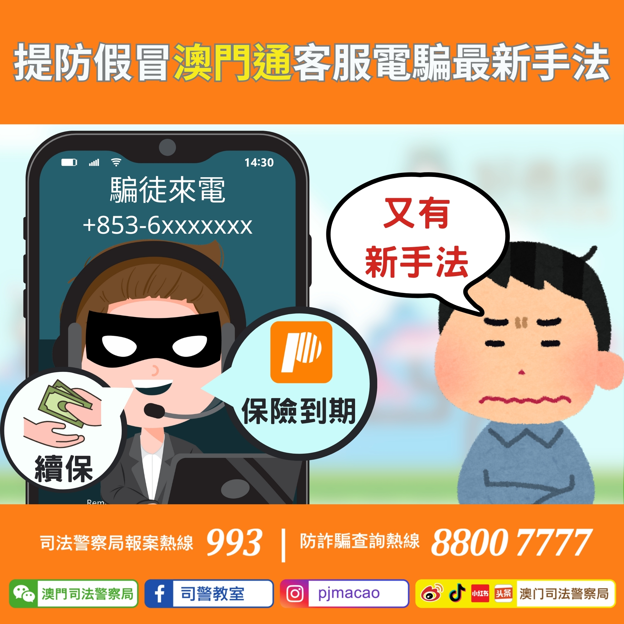 1.如接獲自稱“澳門通”的客服來電,若聲稱“保險服務到期,不取消將被收取費用”必定是詐騙;