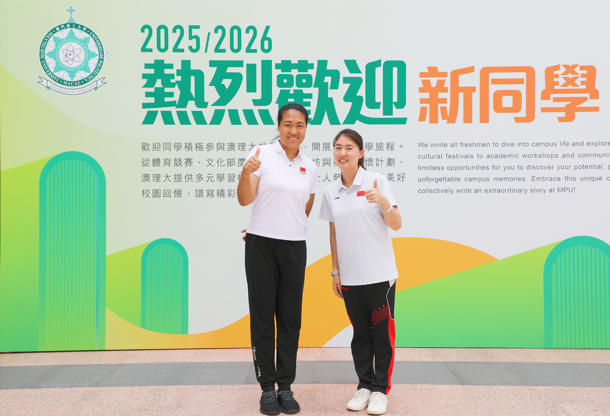 澳門理工大學於2025/2026學年歡迎3000名本碩博學位課程新生,當中包括兩名體育與運動科學博士學位課程新生—倫敦奧運會女子200米蝶泳項目金牌得主焦劉洋,以及北京奧運會賽艇女子雙槳四人艇項目金牌得主張楊楊。兩名奧運金牌運動員選擇入讀澳理大,彰顯大學卓越的學術聲譽與科研實力,已成為國際優秀人才實現學術理想的首選學府。