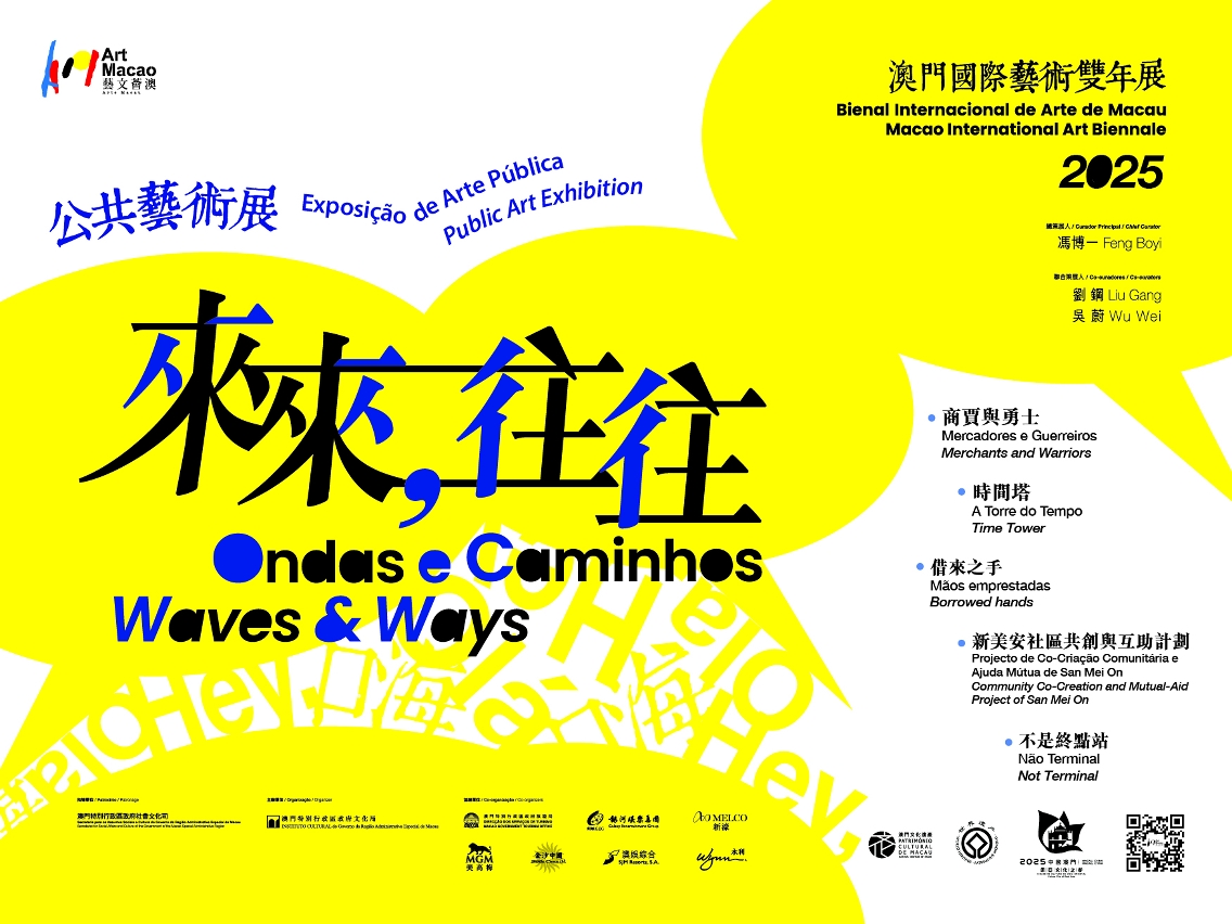 公共藝術展由馮博一擔任總策展人,劉鋼與吳蔚聯合策展,以“來來,往往”為主題,將藝術融入城市空間與日常生活,邀請觀眾在行走與駐足中想像公共空間的新可能,同時呼應本屆雙年展主題“嗨,你幹甚麼來了?”,邀請觀眾共同編織城市的情感紋理。公共藝術展共邀請9位知名海內外藝術家的5件/組作品融入城市脈動,包括:已於7月及8月率先啟動的《新美安社區共創與互助計劃》及紀念澳門榮膺2025年“東亞文化之都”而創作的《時間塔》,以及將於開幕日登場的《借來之手》、《商賈與勇士》與《不是終點站》。