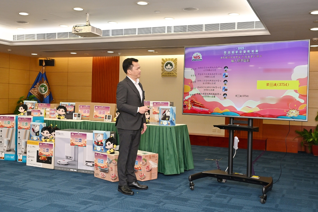 “2025全民國家安全教育展線上問答遊戲”已於8月22日圓滿結束,並於9月12日在司法警察局總部大樓舉行抽奬儀式,經電腦隨機抽出40名得奬者,現公佈得獎名單(名單載於附件)。