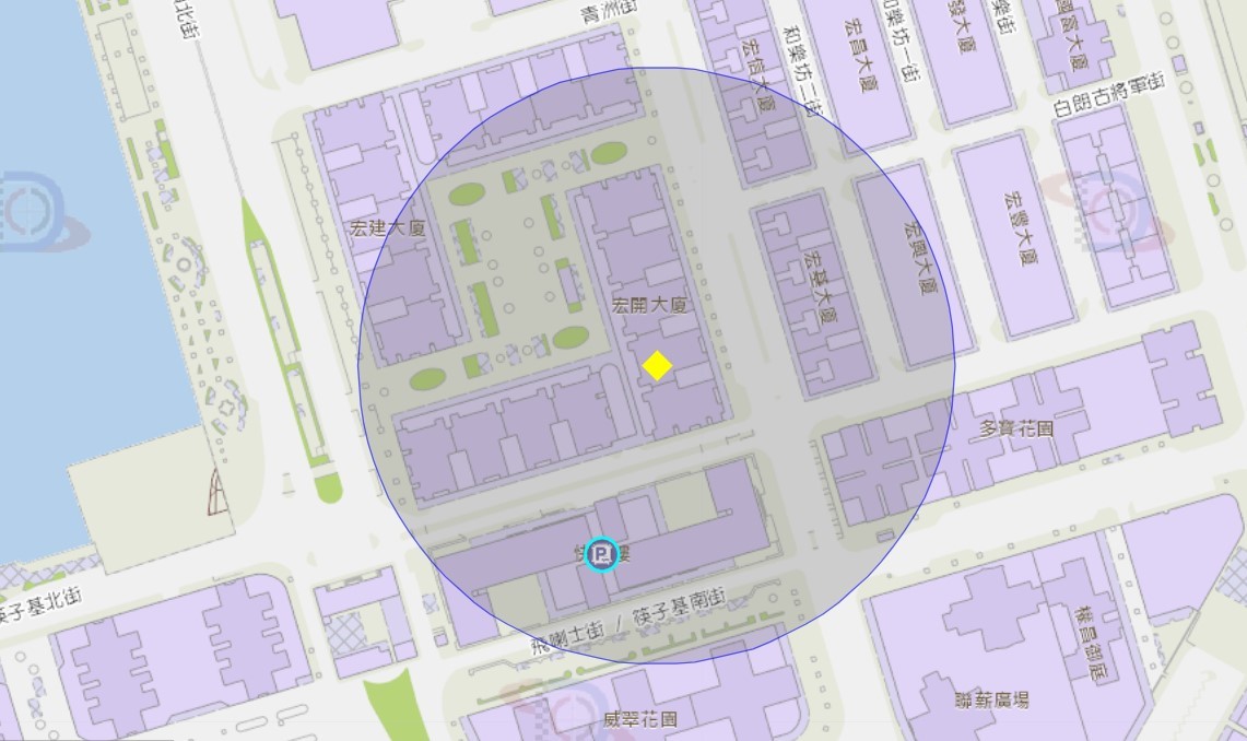 青怡大廈(第二座)附近風險區域100米半徑範圍