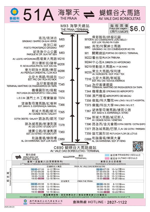 市民可透過兩巴網站(澳巴 http://www.tcm.com.mo、新福利 https://www.transmac.com.mo)查詢相關路線調整詳情。交通事務局將繼續密切監測各區發展與出行需求變化,適時優化巴士服務,致力為居民提供更便捷的出行體驗。