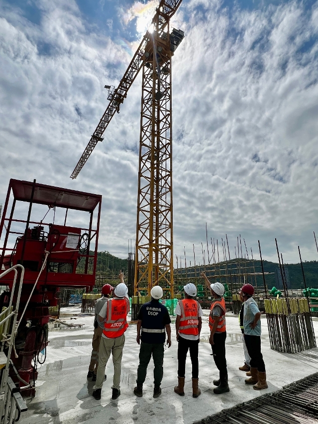 公共建設局今日(23日)早上再次巡查轄下57個工地的防風措施,嚴陣以待應對超強颱風襲澳,所有工地的履帶式吊機、樁機合共154台已全部降低到地面,25台天秤也全部鬆開至自由狀態,24個有外牆棚架的地盤已完成加固或收網,所有海上工程船舶已撤離避風。