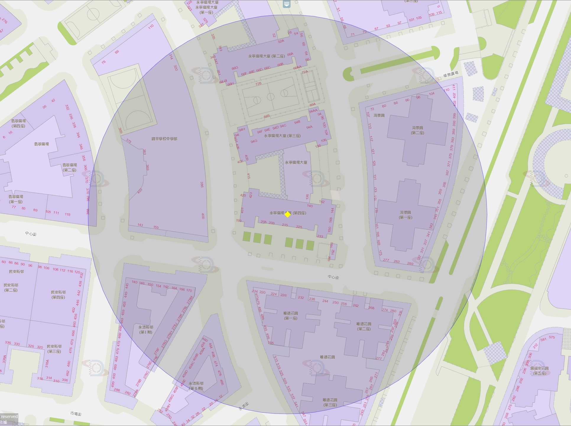 • 永寧廣場第四座附近風險區域100米半徑範圍