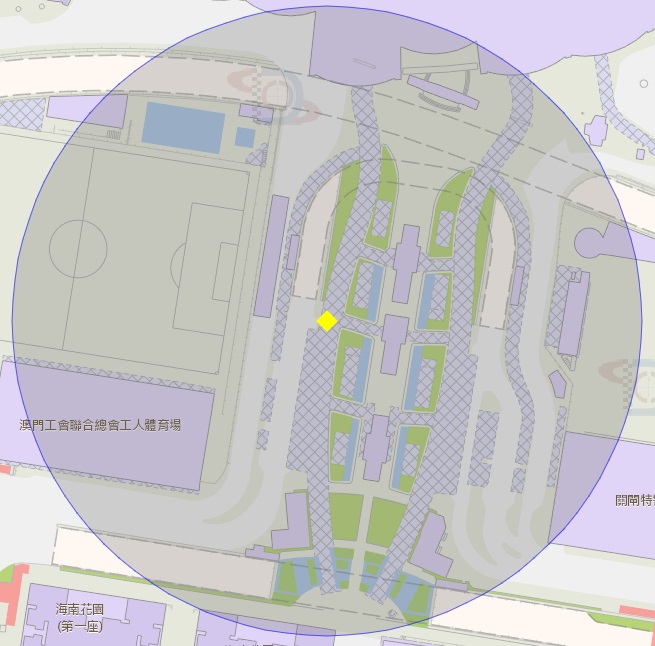 澳門勞動節大馬路御景灣第5座附近風險區域100米半徑範圍