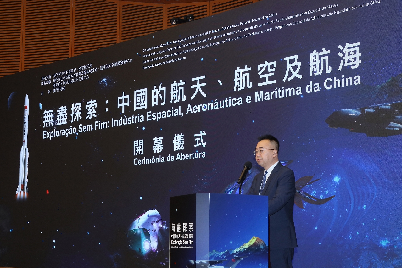 劉雲峰副司長致辭時稱,澳門作為粵港澳大灣區四大中心城市之一和區域發展的核心引擎,承載著國家的高度信任和殷切期盼。是次與澳門特區政府合辦展覽,旨在展示國家在科技創新領域的輝煌成就,讓更多澳門同胞了解祖國航天、航空、航海事業的發展,並激發澳門年青一代對科學的熱情,樹立探索未知世界的遠大目標。