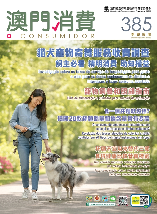 最新一期《澳門消費》公佈貓犬寵物寄養服務收費調查,以及比較杯麵營養標籤的熱量和鈉含量,有關調查資料將有助消費者作出精明的消費選擇,以及建立健康的飲食習慣。