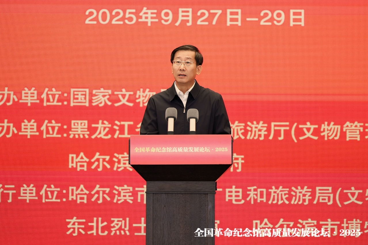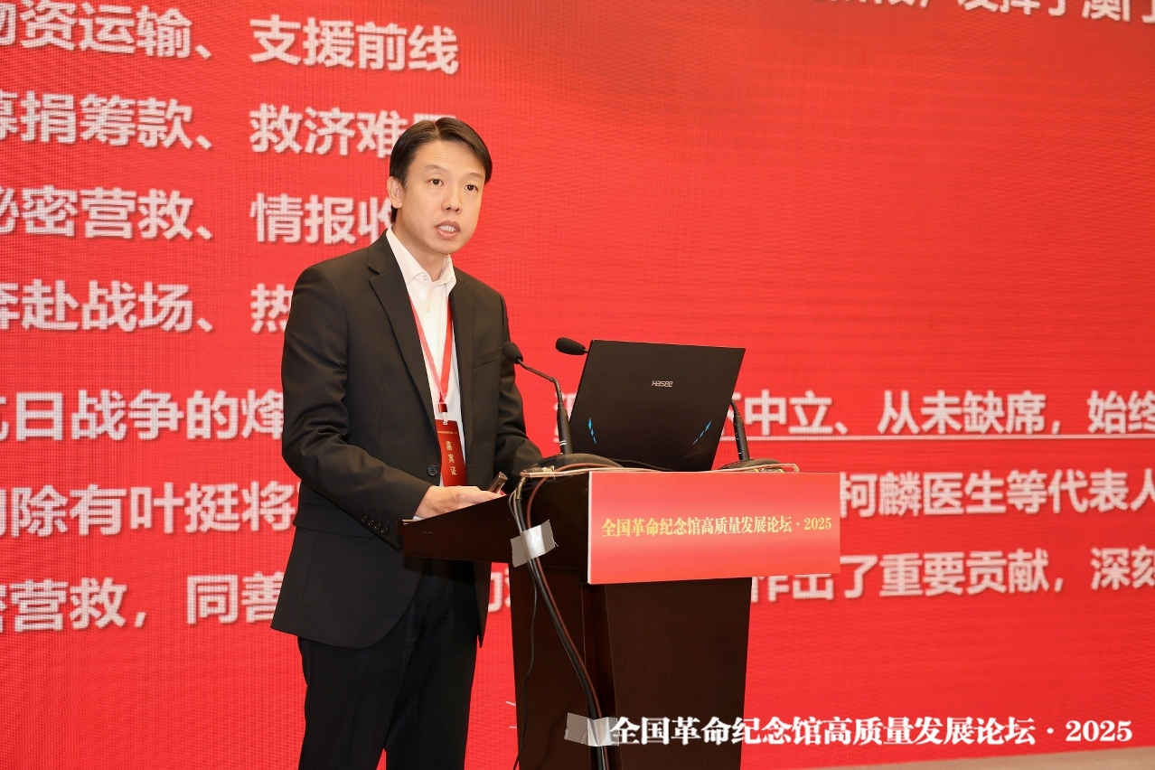 由國家文物局主辦的“全國革命紀念館高質量發展論壇・2025"於9月28日至29日在黑龍江省哈爾濱市舉行。本屆論壇圍繞抗戰文物保護、講好抗戰故事、弘揚抗戰精神進行分享交流,文化和旅遊部副部長、國家文物局長饒權出席並作主旨報告,全國各地革命文物保護利用相關單位、專家學者參會交流,文化局副局長蔡健龍會上介紹澳門抗戰文物保護、弘揚抗戰精神,以及紀念抗戰勝利80周年活動的相關情況。