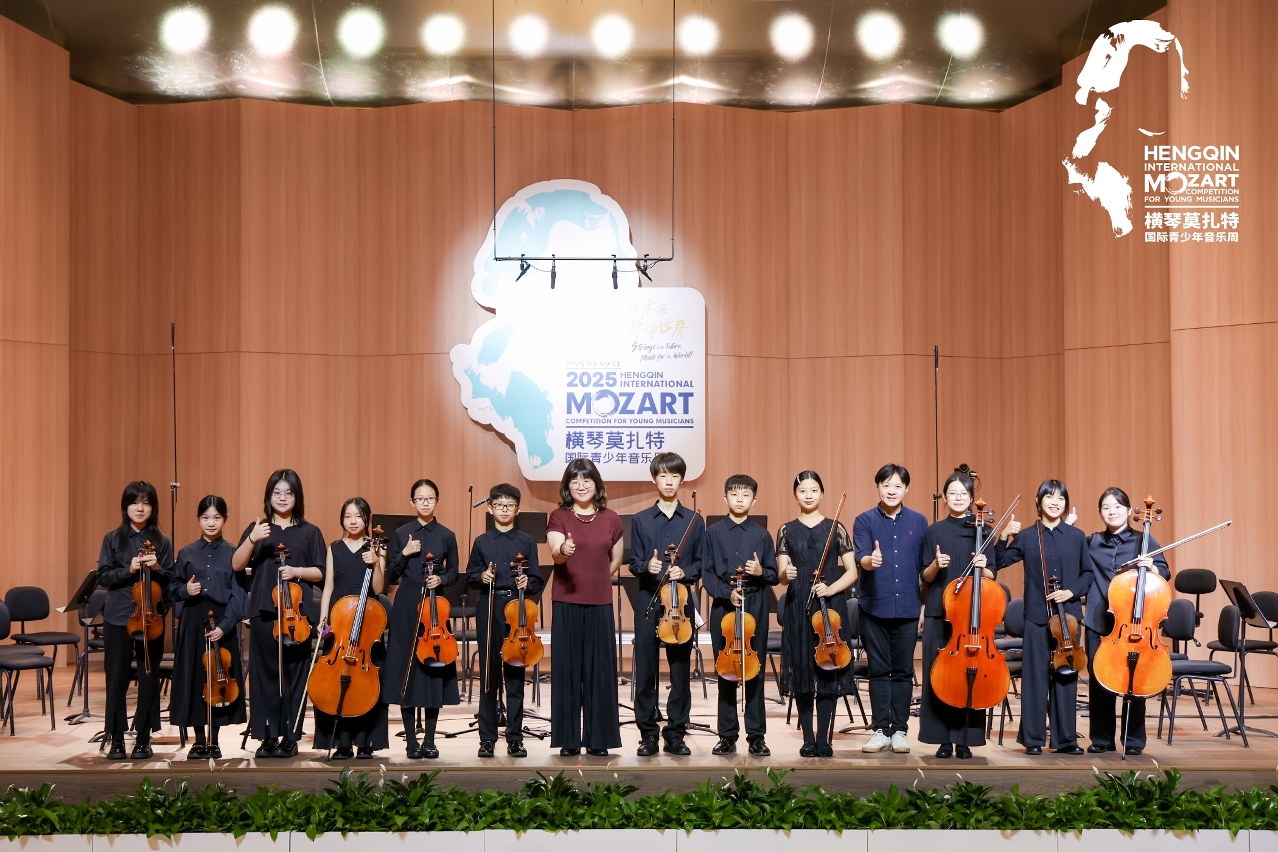 橫琴莫扎特國際青少年音樂周是中國目前唯一同時獲得“世界國際音樂比賽聯盟(WFIMC)”與“阿林克.阿格里奇基金會(AAF)國際鋼琴賽事聯盟”雙重認證的國際青少年音樂盛事,被譽為“國際天才音樂家搖籃”。音樂學校12名弦樂學生獲活動組委會邀請,加入“莫扎特青少年節日樂團”,在國際著名指揮家拉瓦爾德.斯庫—拉庫森的指揮下,與來自粵港澳大灣區選拔出的優秀青少年樂手於橫琴文化藝術中心同台獻藝。在連續數日的排練與演出過程中,學生們得以近距離領略各地青少年樂手的專業演奏風采,收獲寶貴的演出實踐與經驗。