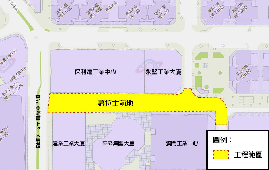 為優化慕拉士前地行人及行車出行環境,公共建設局與交通事務局計劃於10月中旬展開慕拉士前地道路整治工程,當中包括開通由高利亞海軍上將大馬路往慕拉士前地方向的行車道,並於慕拉士前地增設行人道以完善行人通行環境;此外,亦針對現時路段內工業大廈對上落客貨的需求增設上落客貨區。