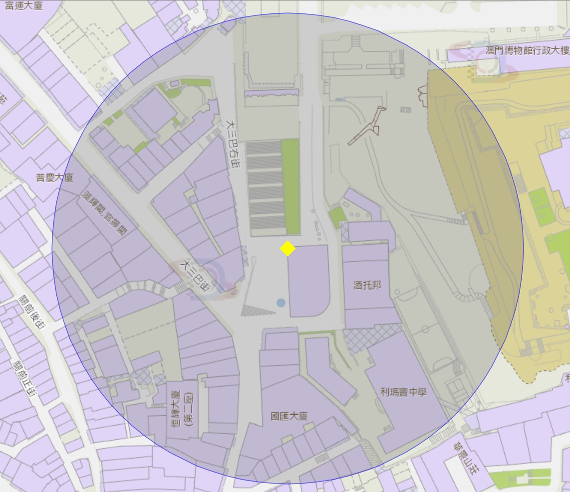 大三巴牌坊附近風險區域100米半徑範圍