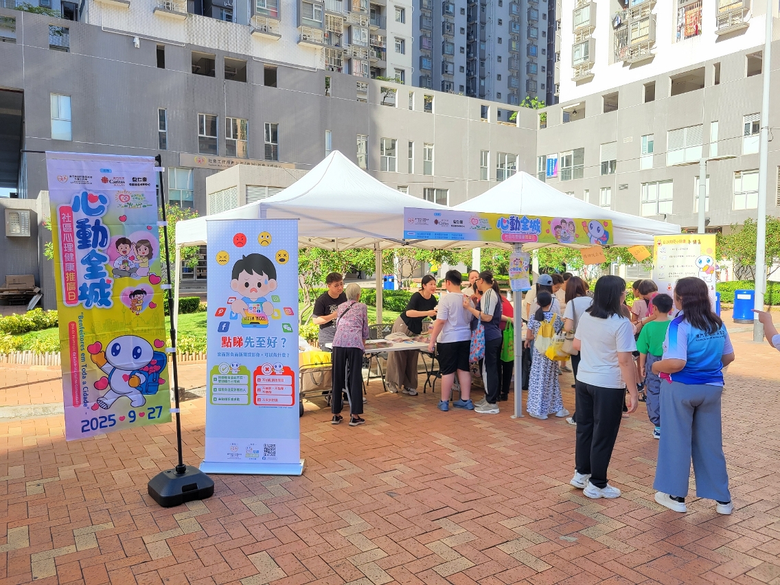 由社會工作局與澳門明愛泉仁樂家庭綜合服務中心合辦、6個“分區協作聯網”共48間機構承辦“心動全城”社區心理健康推廣日於9月27日下午在全澳各區11個站點順利舉行,吸引近4,500人次參與。