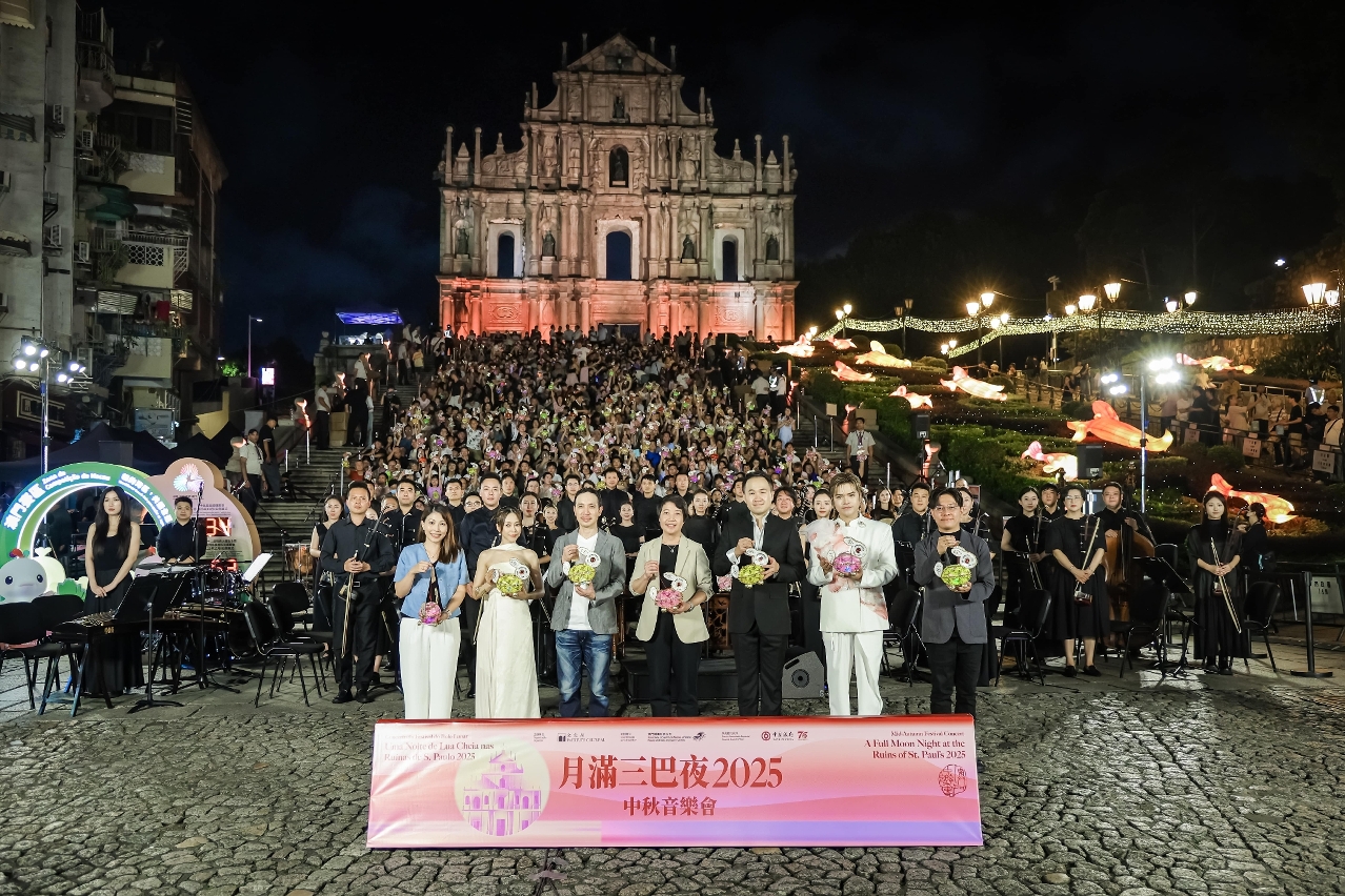 由文化局主辦、澳門樂團有限公司承辦的“月滿三巴夜2025”中秋音樂會,於10月6日8時及9時在大三巴牌坊舉行。澳門中樂團於世界遺產景點奏響一系列洋溢中秋韻味的經典樂章,吸引眾多市民旅客駐足聆賞,在璀璨夜色中感受文化傳承的瑰麗奇景及圓月溫情。