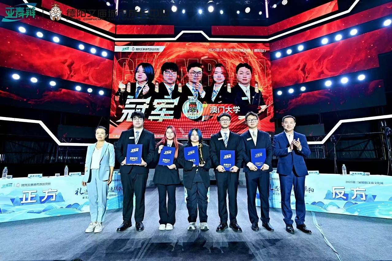 澳門大學普通話辯論隊在四川省舉行的“2025亞太青少年辯論錦標賽”決賽中以3:0的壓倒性優勢勇奪冠軍。澳大人文學院研究生周琳欽在整個賽程中三次獲得“最佳辯手” 稱號。