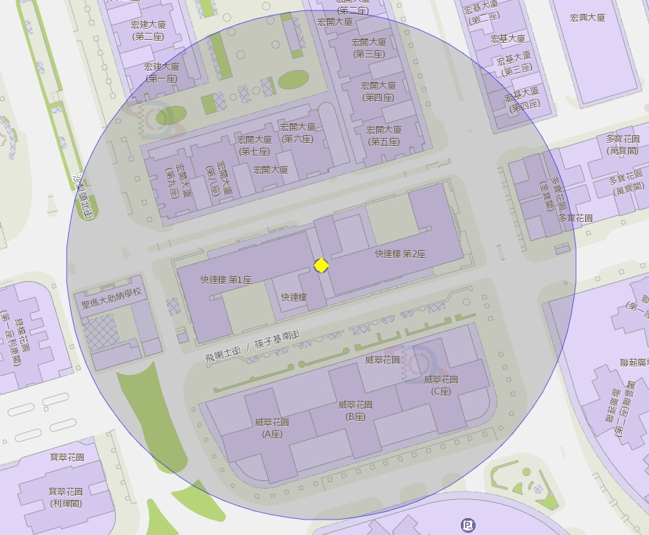 快達樓停車場附近風險區域100米半徑範圍