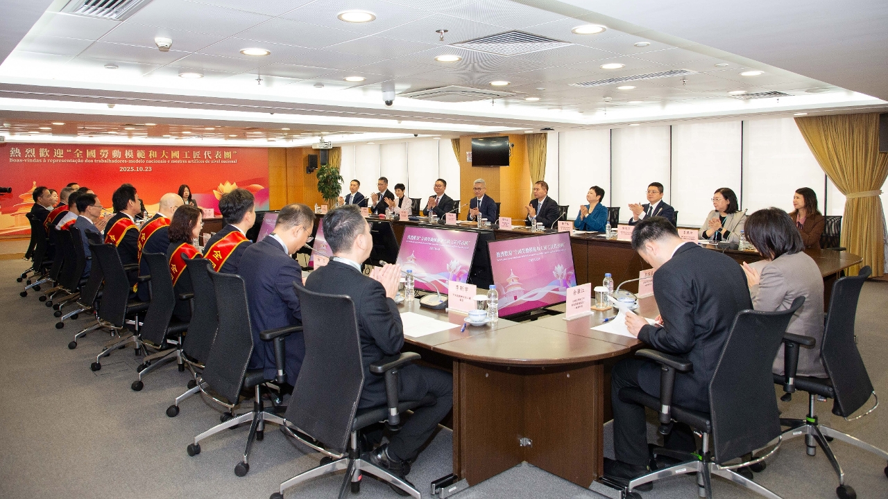戴建業代表澳門特區政府,對代表團訪澳表示熱烈歡迎,並向全總成立100周年致以祝賀。戴建業表示,希望通過代表團訪澳的系列活動,讓本澳各界特別是廣大勞動者,深刻領會勞模精神、勞動精神與工匠精神,在各自崗位上追求卓越,為澳門發展貢獻力量。同時,代表團的勞動模範、大國工匠均是來自不同專業領域的傑出勞動者,其專業背景與澳門“1+4”經濟適度多元戰略佈局高度契合,期待代表團能為本澳相關產業的發展部署,提供寶貴經驗和建議。